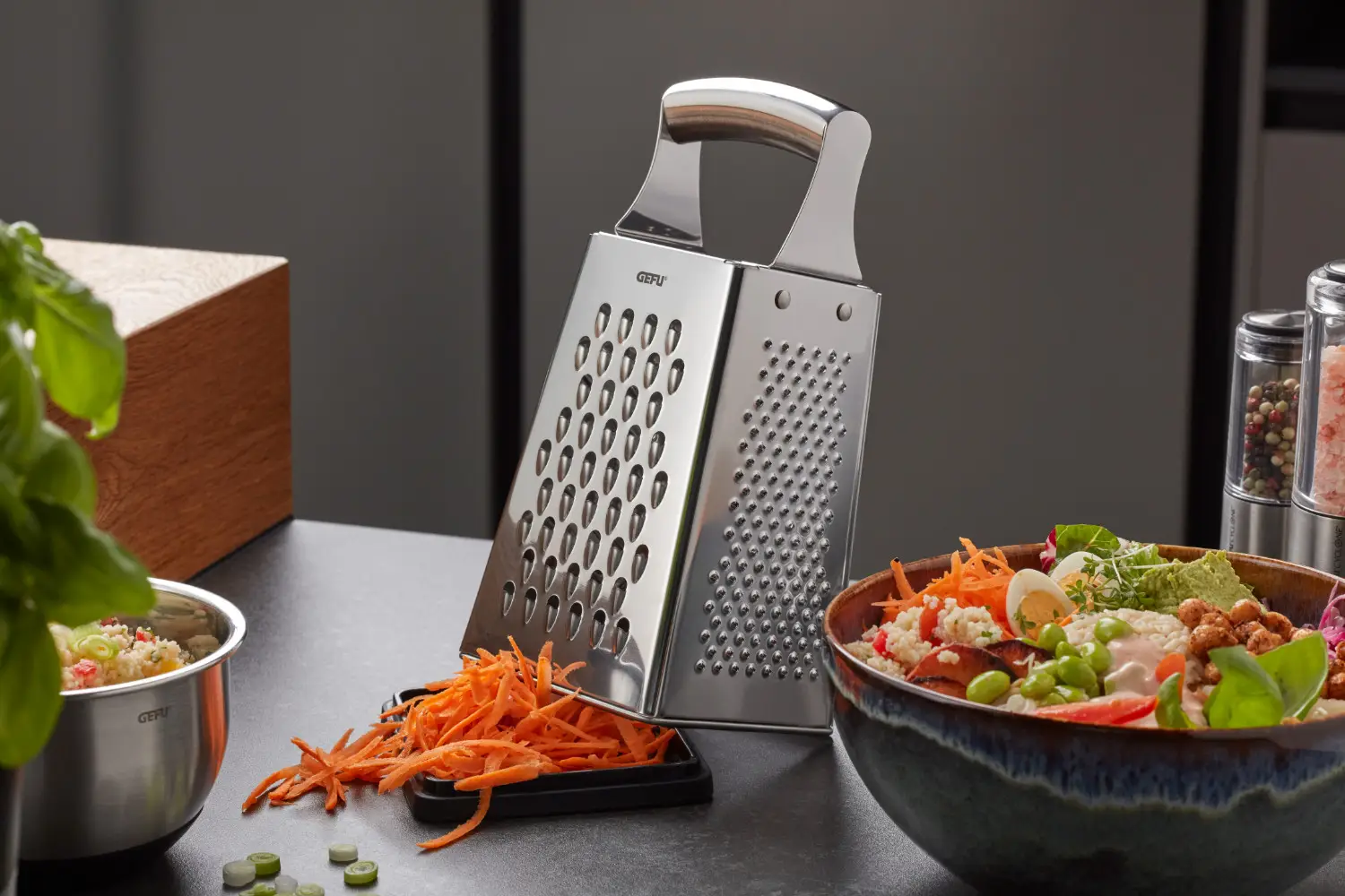 Niemiecki producent GEFU oferuje praktyczne produkty do kuchni, które charakteryzują się innowacyjnymi designami, opracowanymi tak by odpowiednio spełniały swoje zadania. Wykorzystanie wysokiej jakości materiałów pozytywnie wpływa na ich prezentację i trwałość. W swoim asortymencie oferuje on m.in. różne tarki ręczne.