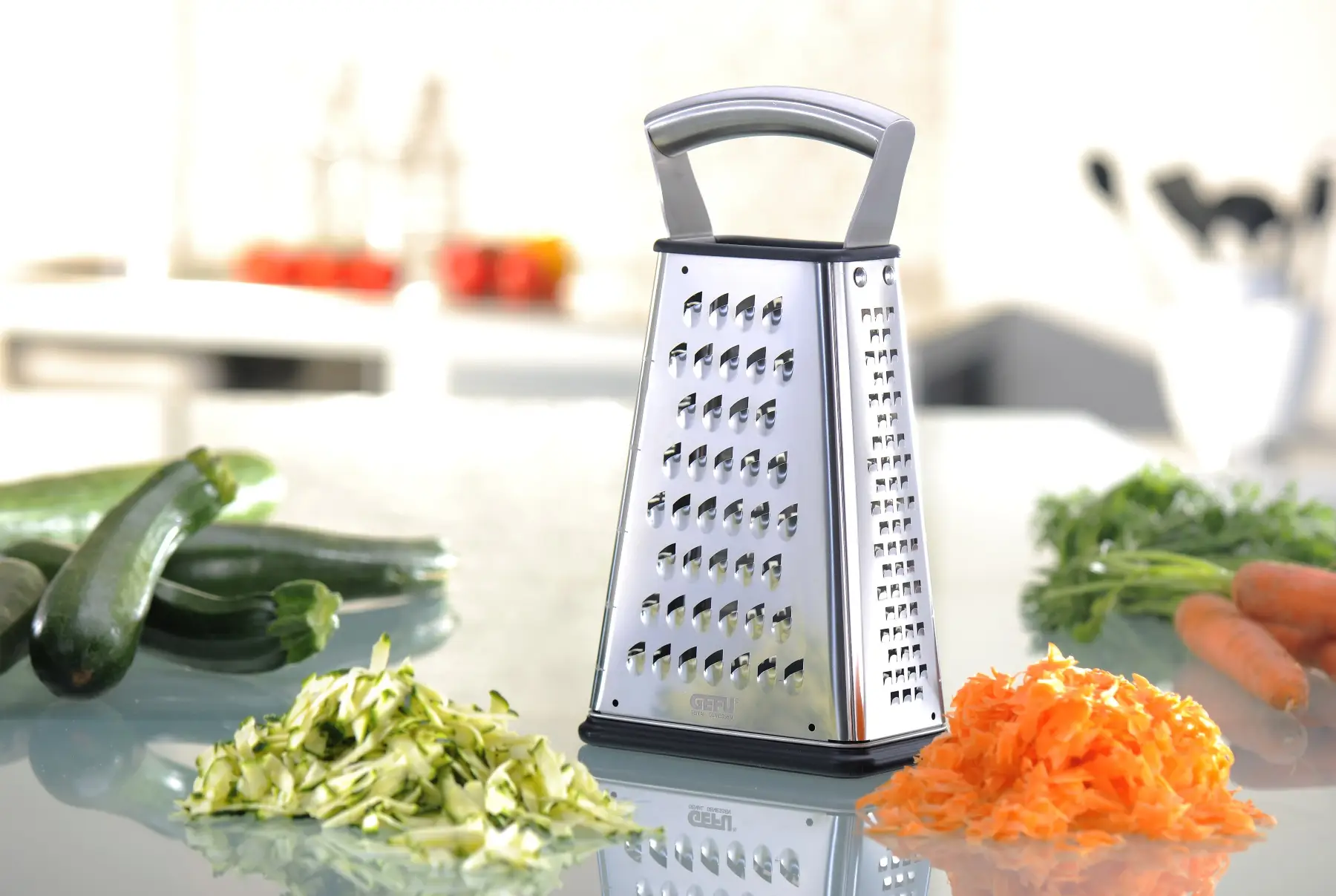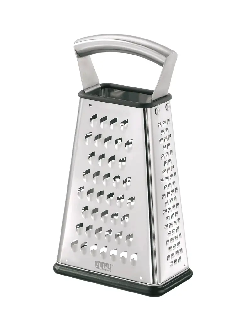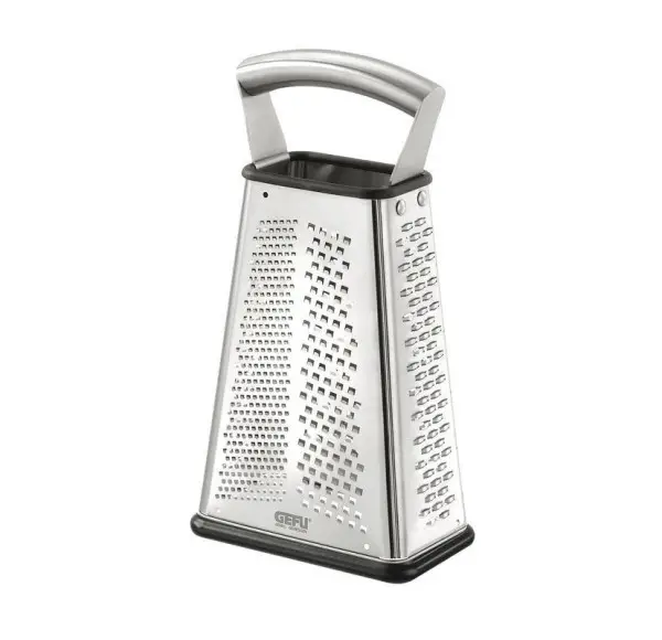 Tarka wykonana została z najwyższej jakości stali nierdzewnej, metoda cięcia laserowego. Posiada 5 rodzajów oczek trących, różnej grubości. Wyposażona jest w antypoślizgową podstawę z tworzywa sztucznego, co zapobiega przesuwaniu się tarki w czasie użytkowania i chroni powierzchnię naczynia. Nadaje się do mycia w zmywarce.