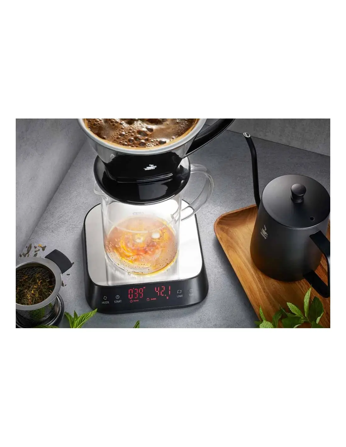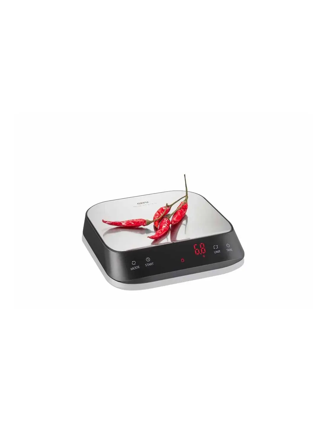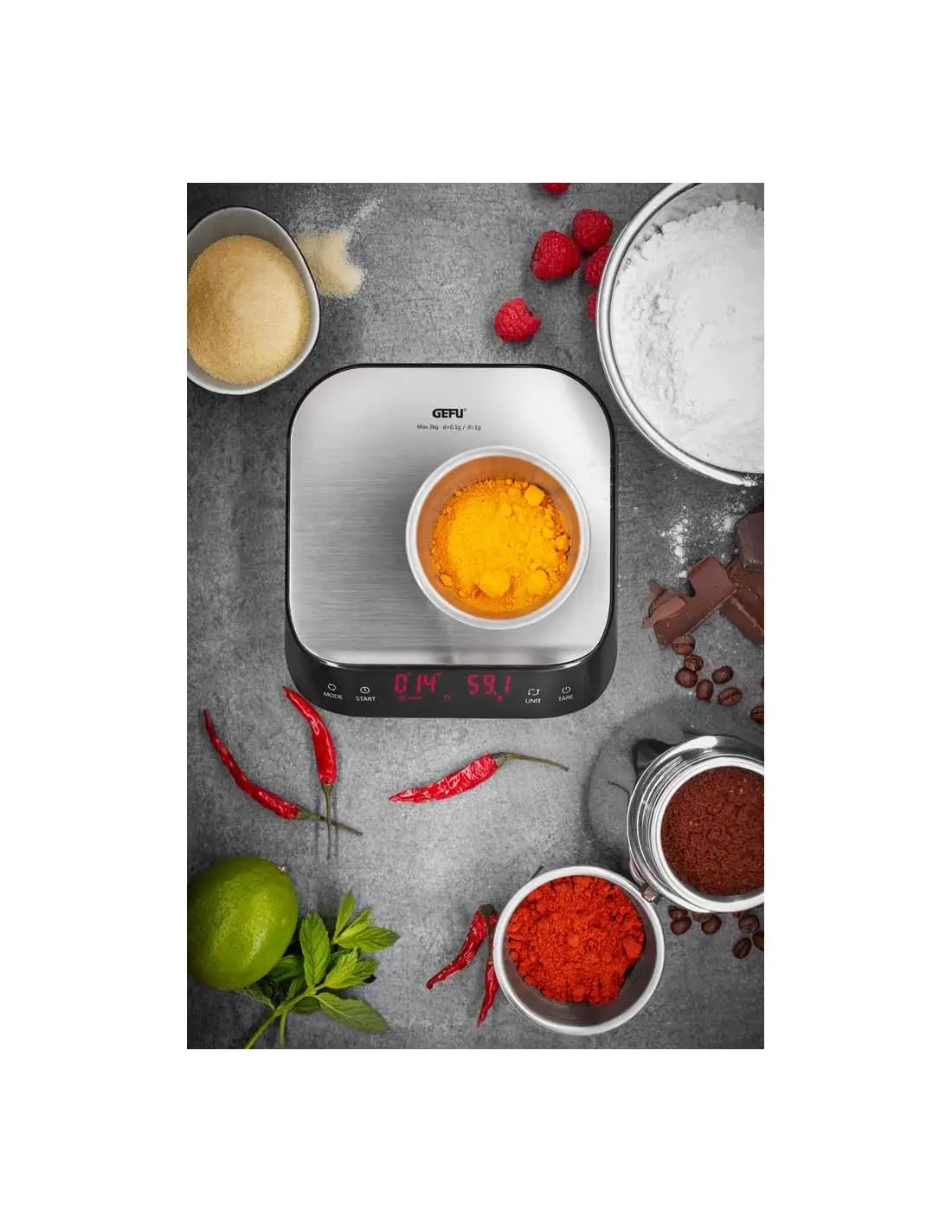 Niezwykle dokładna waga PREZISO umożliwia ważenie produktów od 0,1g do 3kg. Jest ona niezmiernie czuła, co umożliwia ważenie produktów takich jak sól, kawa czy drożdże. PREZISO posiada funkcję ważenia ręcznego, wagi tara oraz pomiaru czasu do 19:59 minut. Produkt ma duży czytelny wyświetlacz oraz cztery dotykowe przyciski, które sprawiają, że obsługa jest prosta i intuicyjna. Dodatkowo, wyposażona jest w cztery antypoślizgowe nóżki, które zapewniają stabilność nawet na śliskich powierzchniach.