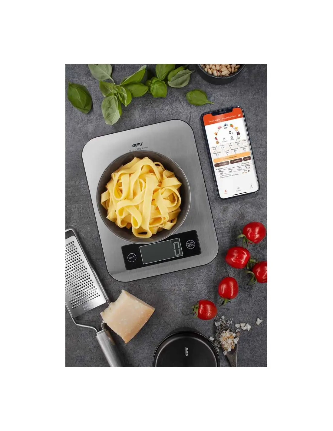 Waga SCORE niemieckiej marki GEFU to wspaniała propozycja dla miłośników gotowania. Posiada duży, czytelny wyświetlacz oraz dwa praktyczne przyciski. Zakres ważenia wynosi od 1 kg do 5 kg. Jej wielkim atutem jest możliwość odczytywania wagi na urządzeniu mobilnym, dzięki czemu z łatwością poznamy gramaturę produktu.