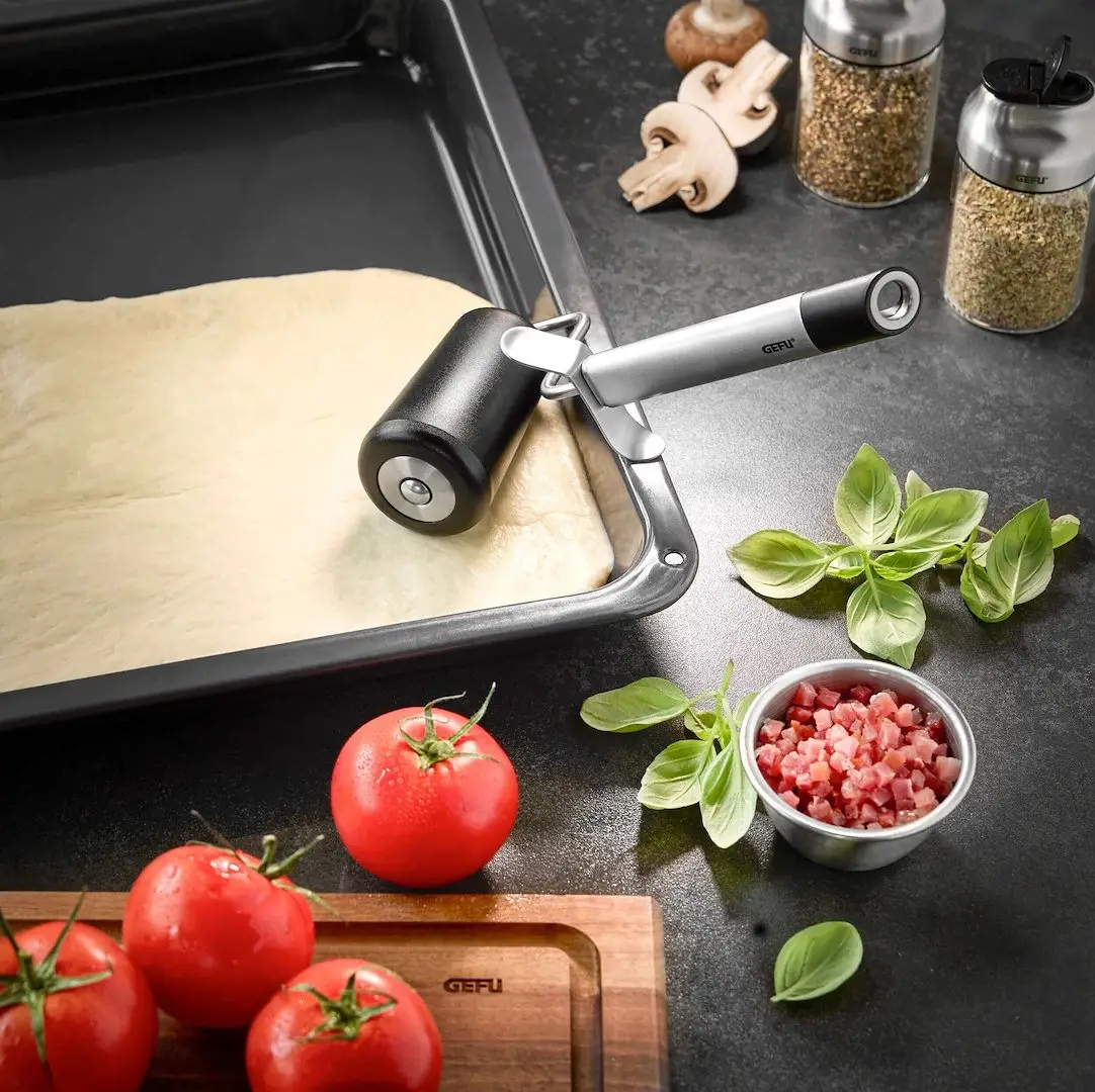 Do precyzyjnego rozwałkowywania ciasta w okrągłych formach do pieczenia lub aż po same rogi prostokątnych blach. Doskonale sprawdzi się przy przygotowywaniu ciast na blasze, pysznych tart, ulubionych pizz i wielu innych wypieków!
