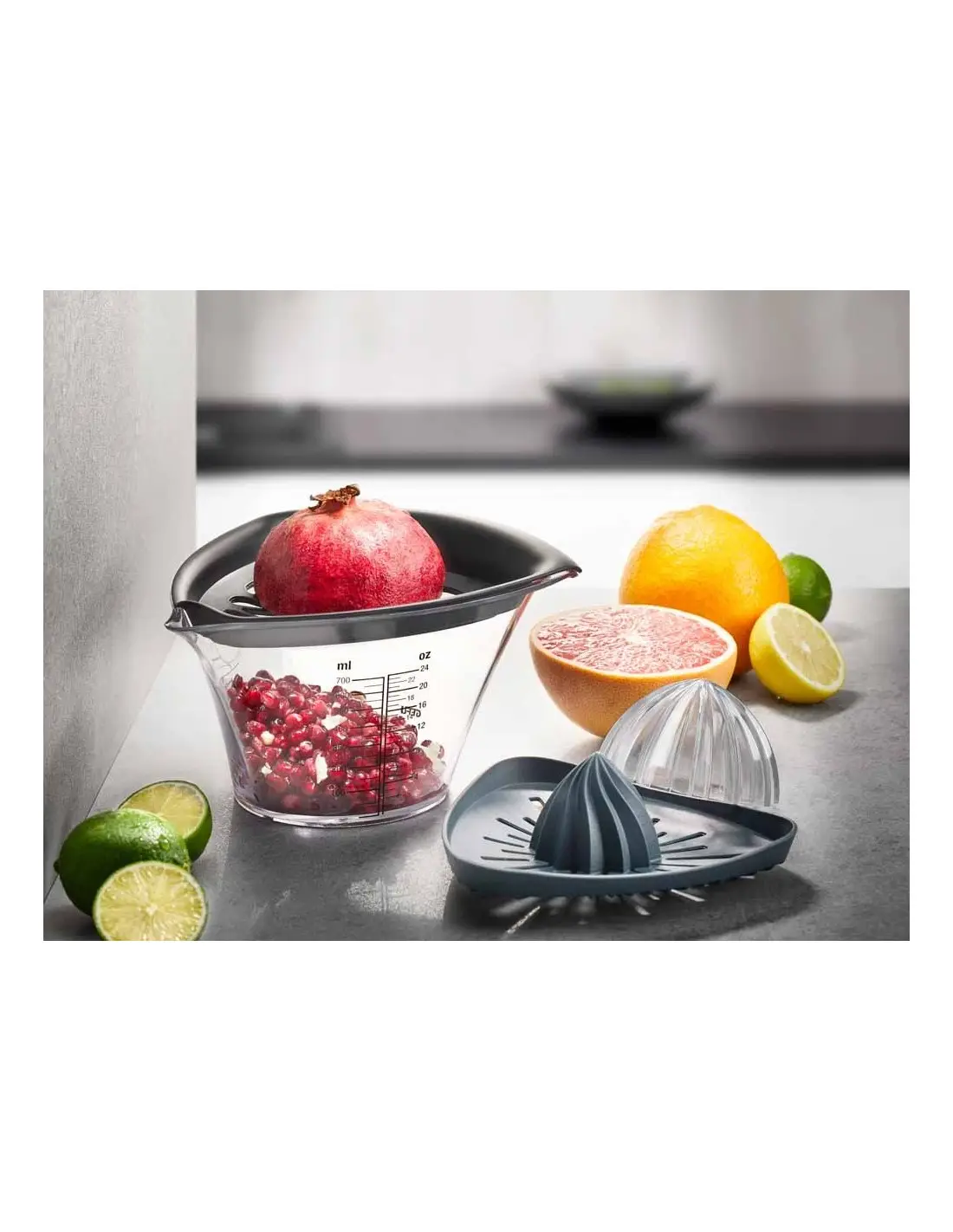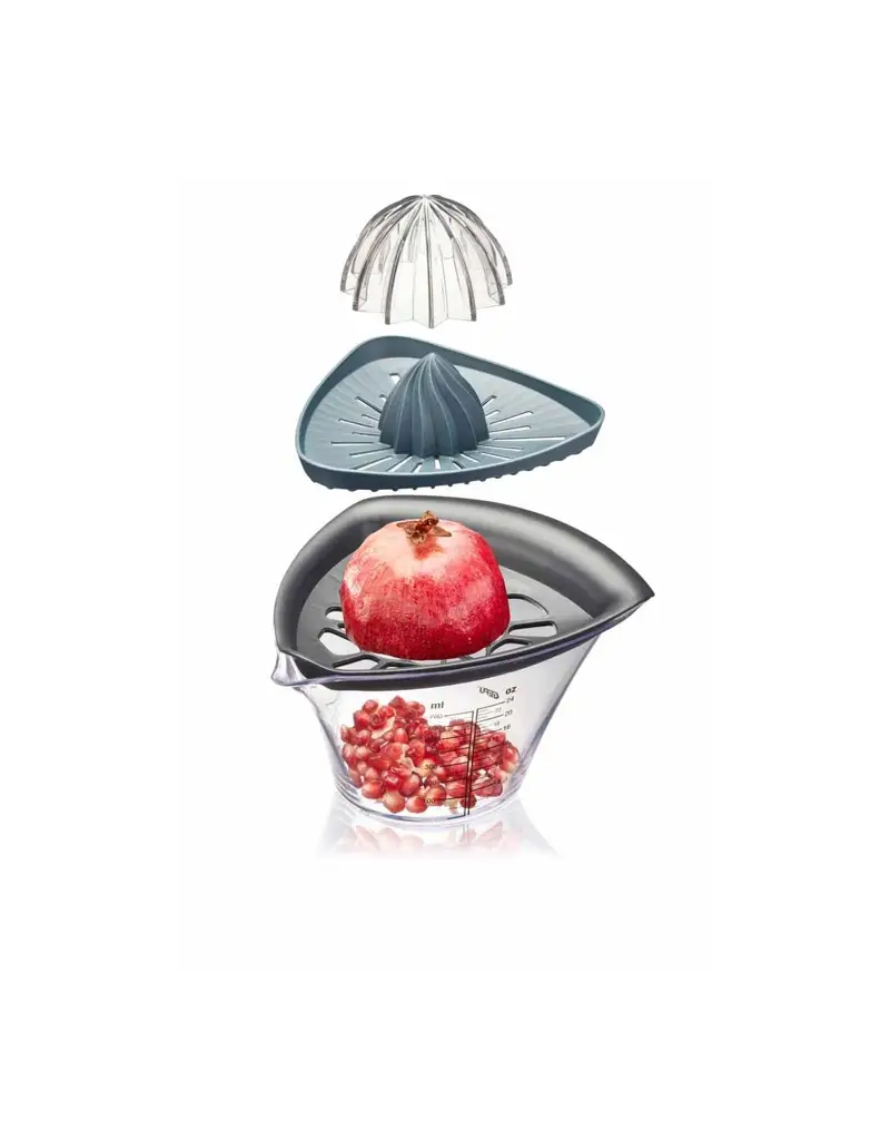 Firma GEFU prezentuje wyciskacz FRUIT. Z jego pomocą w prosty sposób oddzielisz pestki i sok granatu od niejadalnej skórki. Wystarczy umieścić owoc na specjalnej dziurkowanej nakładce. W zestawie znajdują się też dodatkowe nakładki do wyciskania małych i dużych cytrusów, z ich pomocą zrobisz zdrowy sok z cytryny, grejpfruta czy pomarańczy. Wszystkie elementy dopasowane są rozmiarem do dołączonego pojemnika o pojemności 700 ml. Wyprodukowany on jest z wysokiej jakości tworzywa sztucznego, posiada czytelną miarkę w ml. I oz. Oraz wygodną wylewkę.