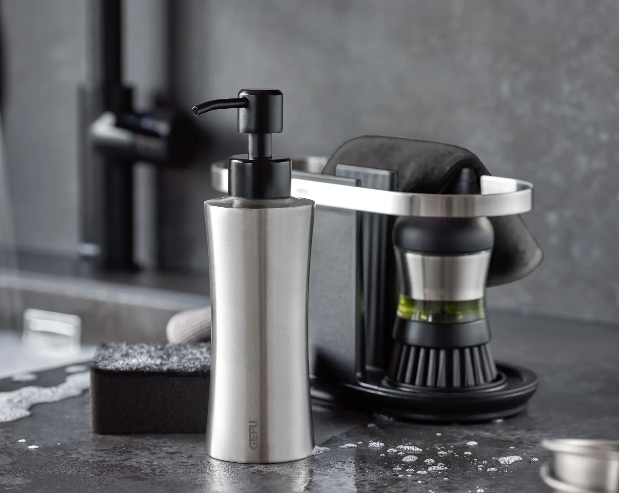 Niemiecka marka GEFU oferuje innowacyjne, wysokiej jakości produkty zarówno do wstępnego przygotowywania żywności i jej przechowywania, jak i do lepszej organizacji i zachowania porządku. W kolekcji SWIFT znaleźć można dozownik, gąbki, ściereczkę i szczotki do wygodnego mycia naczyń i powierzchni mebli.