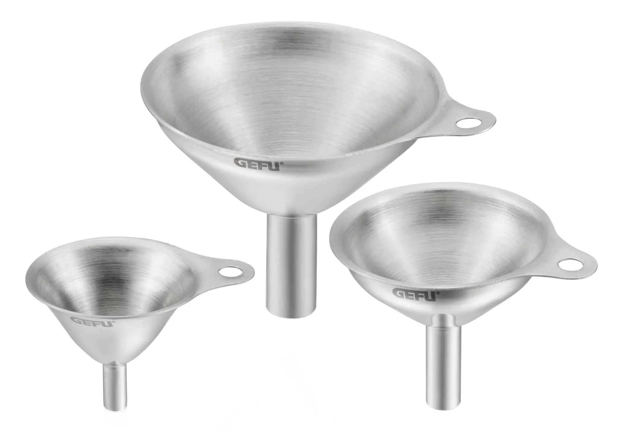 Niemiecki producent GEFU oferuje praktyczne produkty do kuchni, które charakteryzują się innowacyjnymi designami, opracowanymi tak by odpowiednio spełniały swoje zadania. Wykorzystanie wysokiej jakości materiałów pozytywnie wpływa na ich prezentację i trwałość. Lejki VERSARE dostępne są do kupienia na sztuki oraz w zestawie.