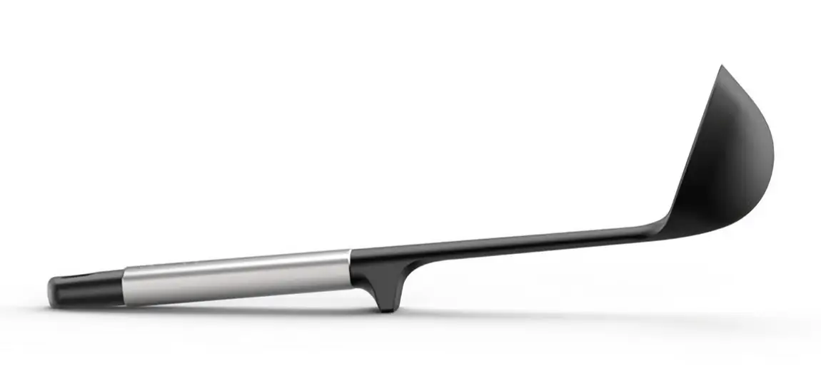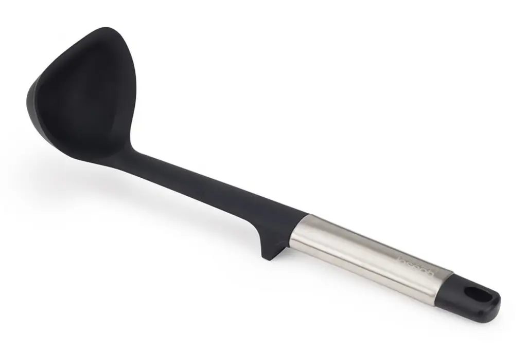 Prezentowana chochelka Elevate o wymiarach 30,5 x 9 x 9,5 cm (dł. x szer. x wys.) i srebrno-czarnym kolorze wykonana została z silikonu i stali nierdzewnej. Sprawdzi się ona do wygodnego nalewania sosów i zup - jest odporna na temperaturę do 210°C. Obciążnik i podpórka w uchwycie zapewniają bardziej higieniczne używanie unosząc główkę nad powierzchnią blatów. Chochelka nadaje się do używania w kontakcie z naczyniami pokrytymi powłokami non-stick. Dla łatwego utrzymania w czystości można ją myć w zmywarce.
