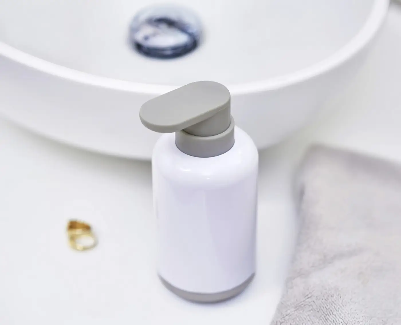 Prezentowany dozownik do mydła z linii Duo ma biały kolor, wymiary 8,5 x 7,3 x 15,8 cm (gł. x szer. x wys.) i pojemność 300 ml. Wykonano go z tworzywa sztucznego. Sprawdzi się on na mydło w płynie, ułatwiając higieniczne mycie rąk. Dozownik wyposażony został w antypoślizgową podstawę, szeroką pompkę i dolne okienko do kontroli zawartości. Jest on łatwy w używaniu. Produkt przeznaczony jest do mycia ręcznego.