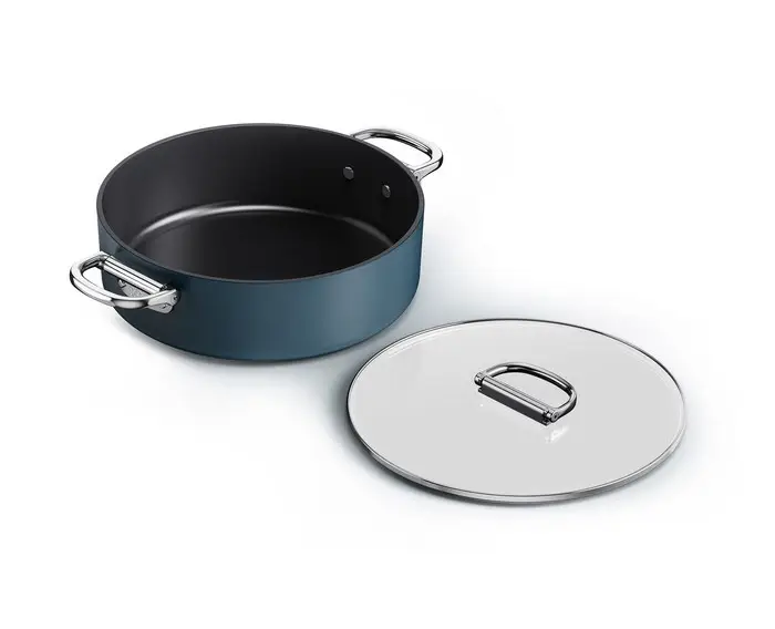 Garnek niski 28 cm ze składanymi uchwytami + pokrywka Space