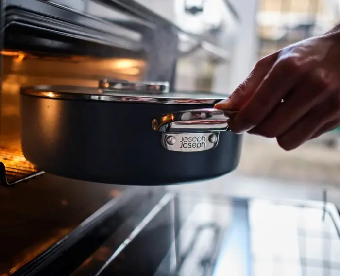 Funkcjonalny i kompaktowy garnek niski 28 cm z serii Space od Joseph Joseph to doskonałe rozwiązanie do smażenia, duszenia i gotowania. Dzięki składanym uchwytom oszczędza miejsce w szafkach kuchennych.