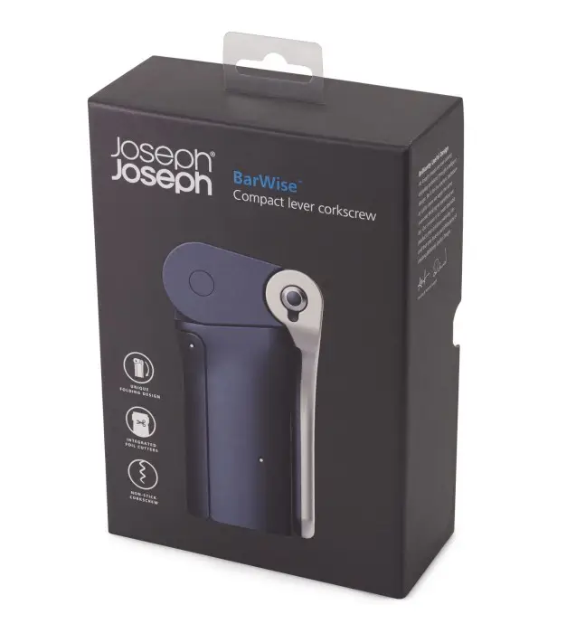 Łatwy w obsłudze korkociąg BarWise od angielskiej firmy Joseph Joseph jest idealnym dodatkiem do każdego domu w którym docenia sie alkohol w postaci wina. W celu zachowania higieny produktu nalezy go przecierać wilgotną ściereczką. (Nie myć w zmywarce)