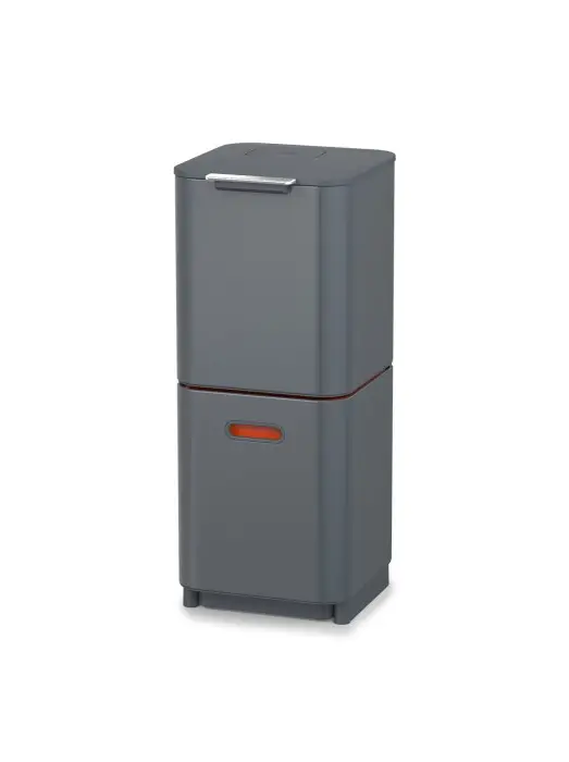 Kosz na śmieci Totem Compact marki Joseph Joseph to świetny sposób na segregowanie odpadów. Kompaktowy projekt kosza pozwala na ograniczenie miejsca w kuchni. Model Totem Compact Grafitowy posiada 2 komory, całkowita pojemność to 40l. Posiada mały pojemniczek na odpady organiczne. Jego dolna część jest wysuwana. W pokrywie umieszczony jest filtr węglowy, który pochłania nieprzyjemne zapachy.