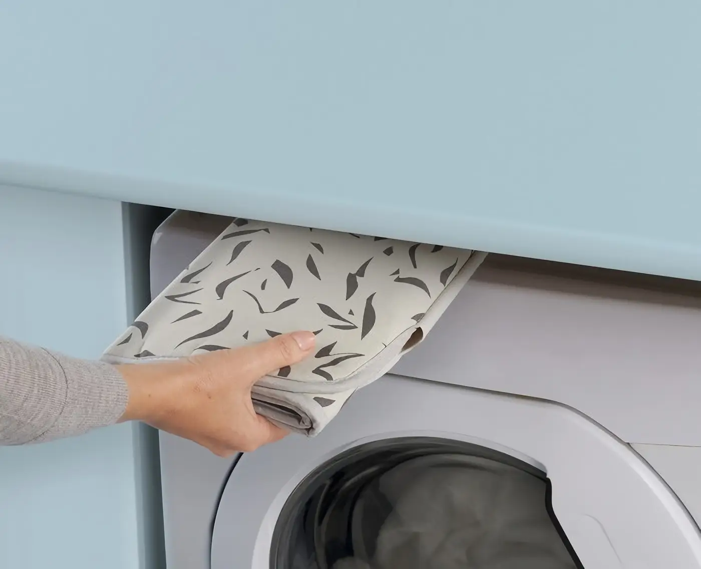 Prezentowana mata do prasowania Swift Scatter Ecru o wymiarach 90 x 47 cm (dł. x szer.) z kolekcji Laundry ma kremowy kolor i abstrakcyjny wzór. Umożliwia ona prasowanie ubrań bez deski i jest odporna na temperaturę do 200ºC. Świetnie sprawdzi się używana na podłodze lub stole. Wyposażono ją w technologię DripLock (pokrowiec z warstwą bawełny, filcu, wodoodporną i antypoślizgową) oraz silikonową podkładkę pod żelazko. Mata jest łatwa w przechowywaniu - można ją wygodnie złożyć, przechowywać na płasko lub zawiesić na drzwiach szafy (posiada uchwyt). Produkt przeznaczony jest do czyszczenia ręcznego.