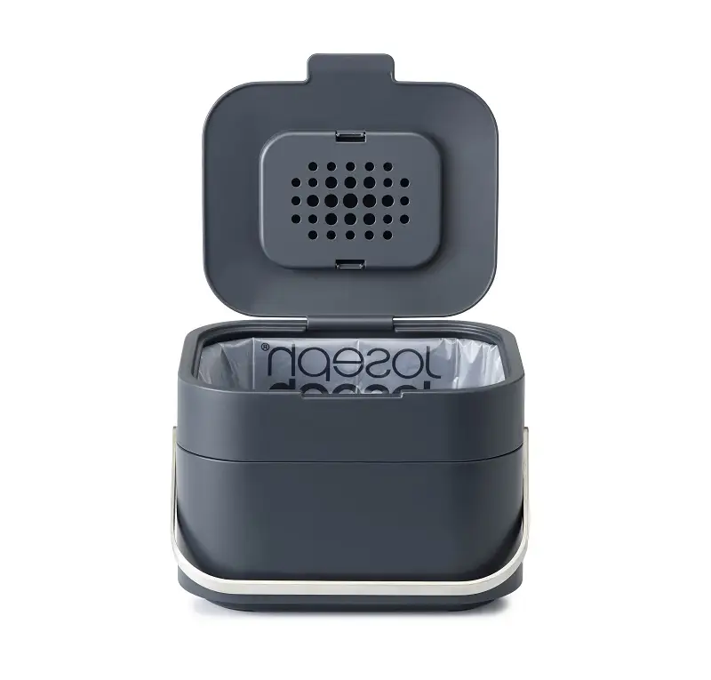 Oszczędzasz miejsce w kuchni, a segregowane odpady bio wydzielają z siebie nieprzyjemne zapachy? Marka Joseph Joseph wyszła naprzeciw oczekiwaniom osób, które często gotują i przygotowała pojemnik Stack 4 Food Waste Caddy. Produkt przeznaczony jest do przechowywania odpadków organicznych, a dzięki wyposażeniu w filtr węglowy żadne zapachy nie wydostają się z jego wnętrza. Zapewnia doskonałą cyrkulację powietrza wewnątrz. Kompostownik wykonany jest z tworzywa sztucznego (polipropylenu) w kolorze grafitowym, wyposażony jest w otwieraną pokrywę i uchwyt ze stali nierdzewnej. Dzięki eleganckiemu wykonaniu pojemnik idealnie wkomponuje się w każdy rodzaj wnętrza. Pojemnik należy myć ręcznie gorącą wodą z mydłem - nie nadaje się do mycia w zmywarkach.