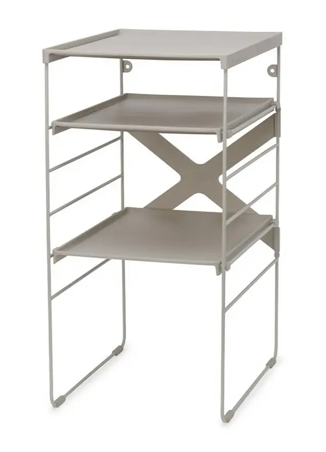 Prezentowany pojedynczy stojak na buty Level o szarym kolorze i wymiarach 51,2 x 26 x 35 cm (wys. x szer. x gł.) wykonano z tworzywa sztucznego i stali. Mieści on do 4 par obuwia (max. obciążenie na 1 półkę - 1 kg) i ma regulowaną wysokość półek, dzięki czemu łatwo można go dostosować. Produkt przeznaczony jest do samodzielnego złożenia - łatwy w montażu, można go przykręcić do ściany. Stojak należy czyścić ręcznie, przecierając wilgotną ściereczką.