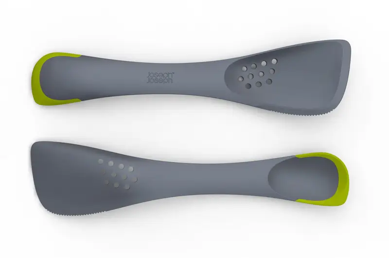 Jedno urządzenie pozwala na przewracanie mięsa czy racuchów, krojenie miękkich mięs czy ryb, rozsmarowywanie kremów, odcedzanie niewielkich porcji np.warzyw i nakładanie ich. Poręczne i ładnie wyglądające narzędzie jest wykonane z materiału odpornego na temperaturę aż do 200 stopni C.