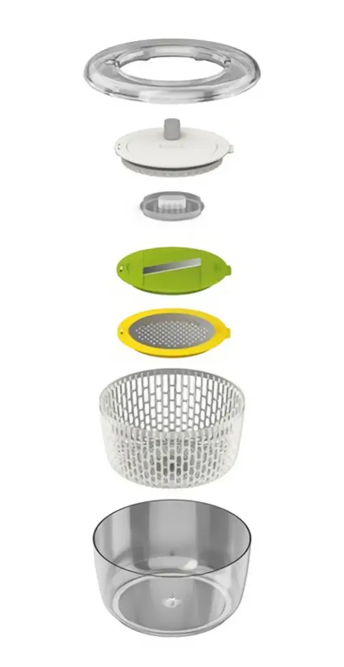 - w komplecie nakładki do ścierania i plastrowania, koszyk i uchwyt do warzyw