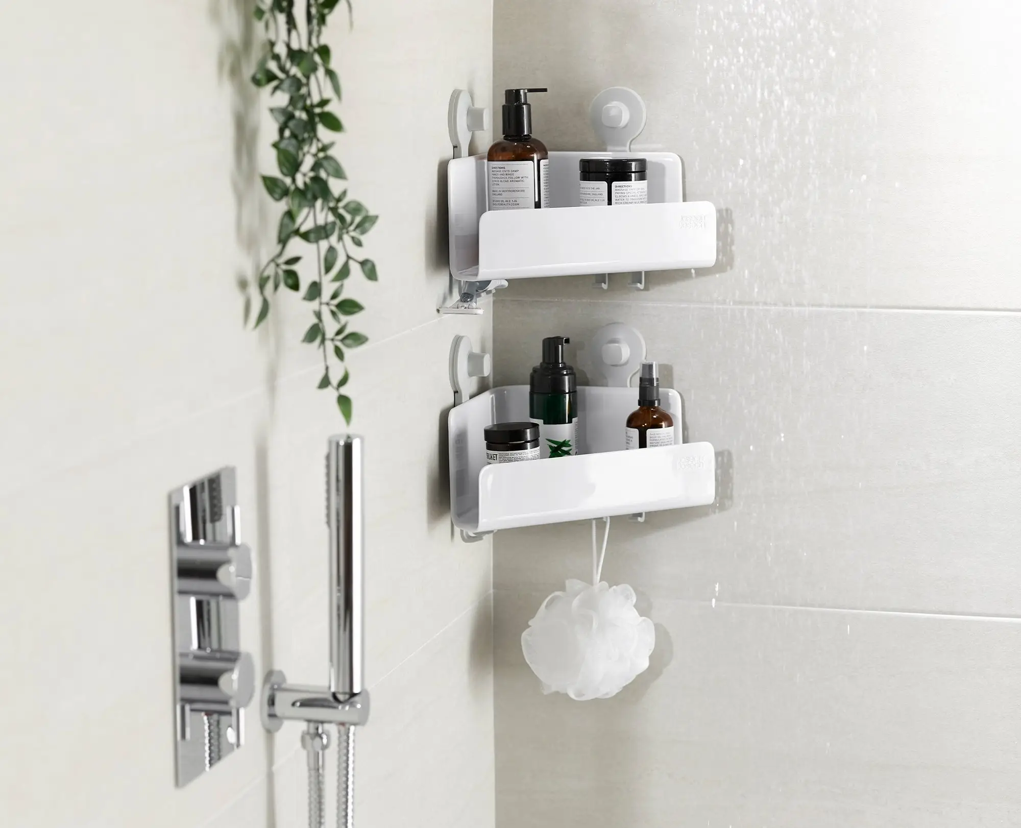 Angielska marka Joseph Joseph oferuje bardzo przydatne produkty o unikalnym wyglądzie i wysokiej jakości. Organizery prysznicowe z kolekcji EasyStore wykonane z tworzywa sztucznego przeznaczone są do czyszczenia ręcznego. Posiadają one otwory w podstawach, które umożliwią łatwe odprowadzanie z nich wody. Ich niewątpliwą zaletą jest montaż przy pomocy przyssawek, dzięki czemu nie trzeba będzie wiercić dziur w ścianie.