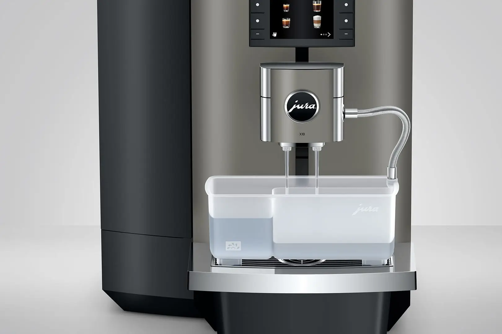 Forma podąża za funkcją – to maksyma X10. Charakteryzuje się on wyrazistą formą, a czytelne instrukcje obsługi podawane są użytkownikowi krok po kroku. W wylewce o regulowanej wysokości zintegrowano wylewkę gorącej wody, mleka i kawy, ułatwiając obsługę. Nowo zaprojektowany front w kolorze Dark Inox podkreśla profesjonalizm i ponadczasową elegancję tego ekspresu do kawy. Ponadto X10 przekonuje użytkowników wygodną i intuicyjną obsługą za pomocą 3,5-calowego ekranu. Wyświetlacz na przednim panelu uzupełniony fizycznymi przyciskami w pełni udostępnia walory użytkowe profesjonalnego ekspresu do kawy.