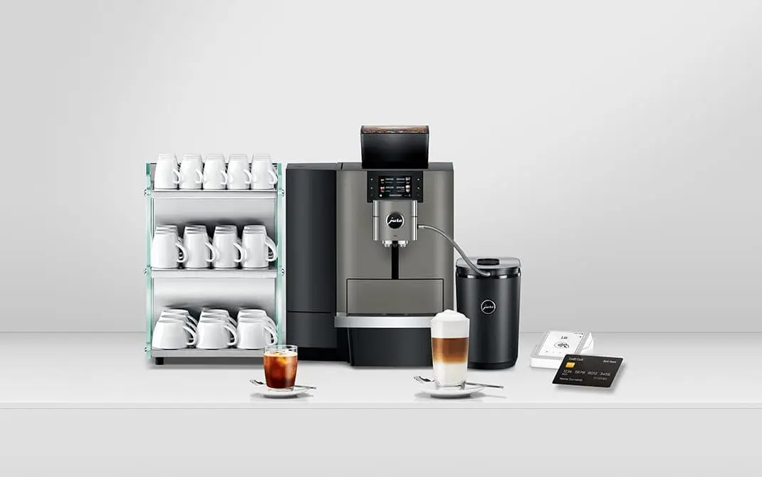 JURA X10 to zaawansowany ekspres automatyczny stworzony z myślą o zastosowaniach profesjonalnych, takich jak biura, hotele, gastronomia oraz strefy samoobsługowe. Urządzenie oferuje szeroki wybór napojów oraz nowoczesne funkcje monitorowania, zapewniając maksymalną wydajność i najwyższą jakość kawy każdego dnia.
