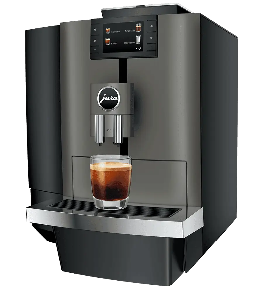 JURA X4c to wydajny ekspres automatyczny stworzony z myślą o miłośnikach klasycznych, czarnych kaw. Zaprojektowany do intensywnego użytkowania w biurach, strefach samoobsługowych oraz przestrzeniach komercyjnych, oferuje niezawodność, intuicyjną obsługę i najwyższą jakość parzenia.