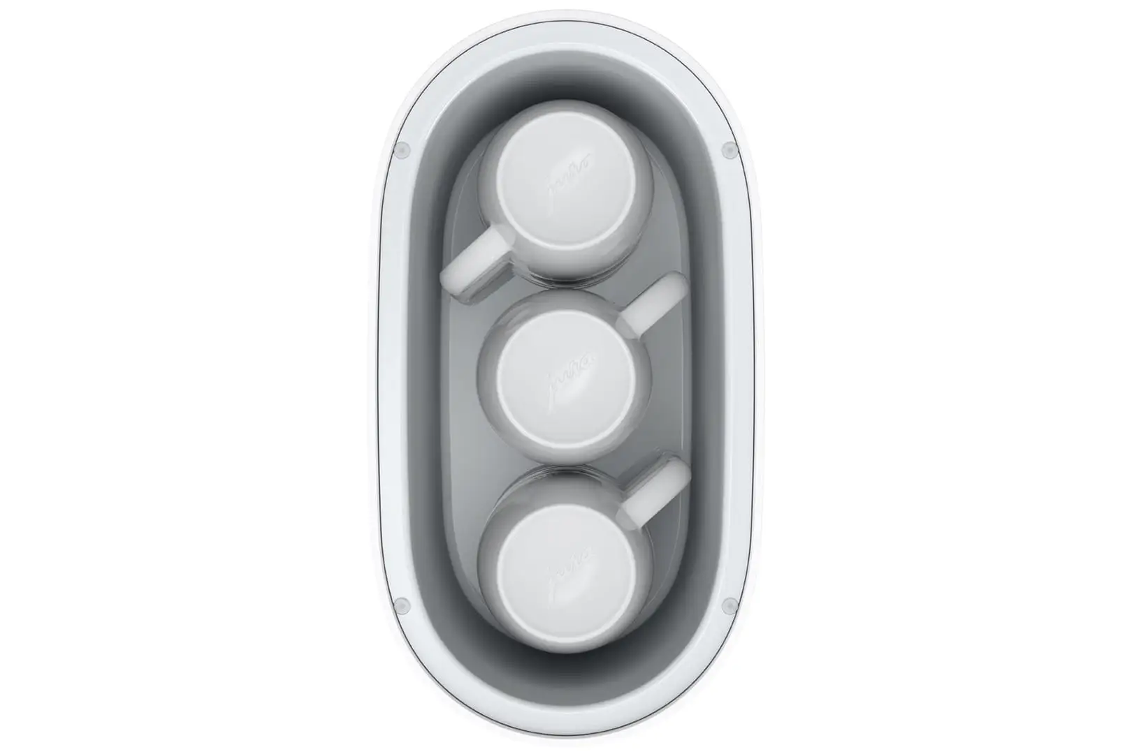 Podgrzewacz do filiżanek S utrzymuje stałą temperaturę 55°C wewnątrz filiżanek. Pokrywa zapobiega utracie ciepła i oszczędza energię. Dzięki optymalnie wstępnie ogrzanej filiżance, specjały kawowe, od ognistego espresso aż do kremowego cappuccino, są bardziej aromatyczne niż kiedykolwiek wcześniej.