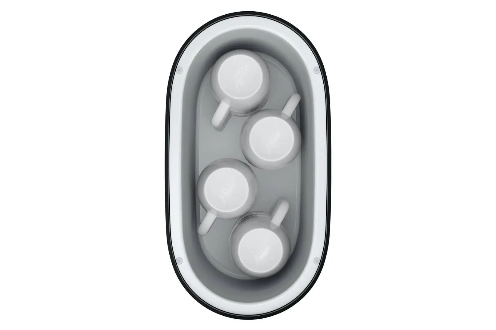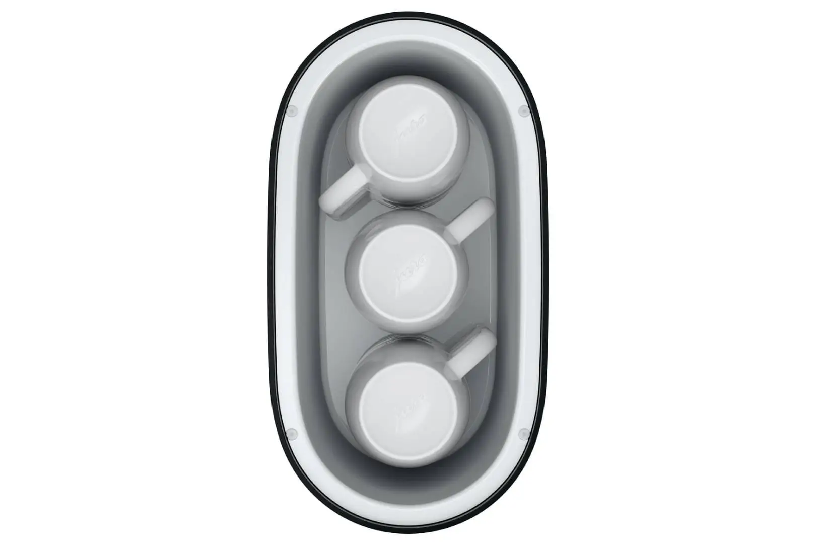 Podgrzewacz do filiżanek S o wymiarach 13,9 x 19,9 x 25,8 cm łatwo zmieści się w każdym miejscu. Proste przełączanie za pomocą przycisku do włączania/wyłączania sprawia, że ten prosty, ale równocześnie elegancki towarzysz każdego automatycznego ekspresu do kawy jest błyskawicznie gotowy do pracy.