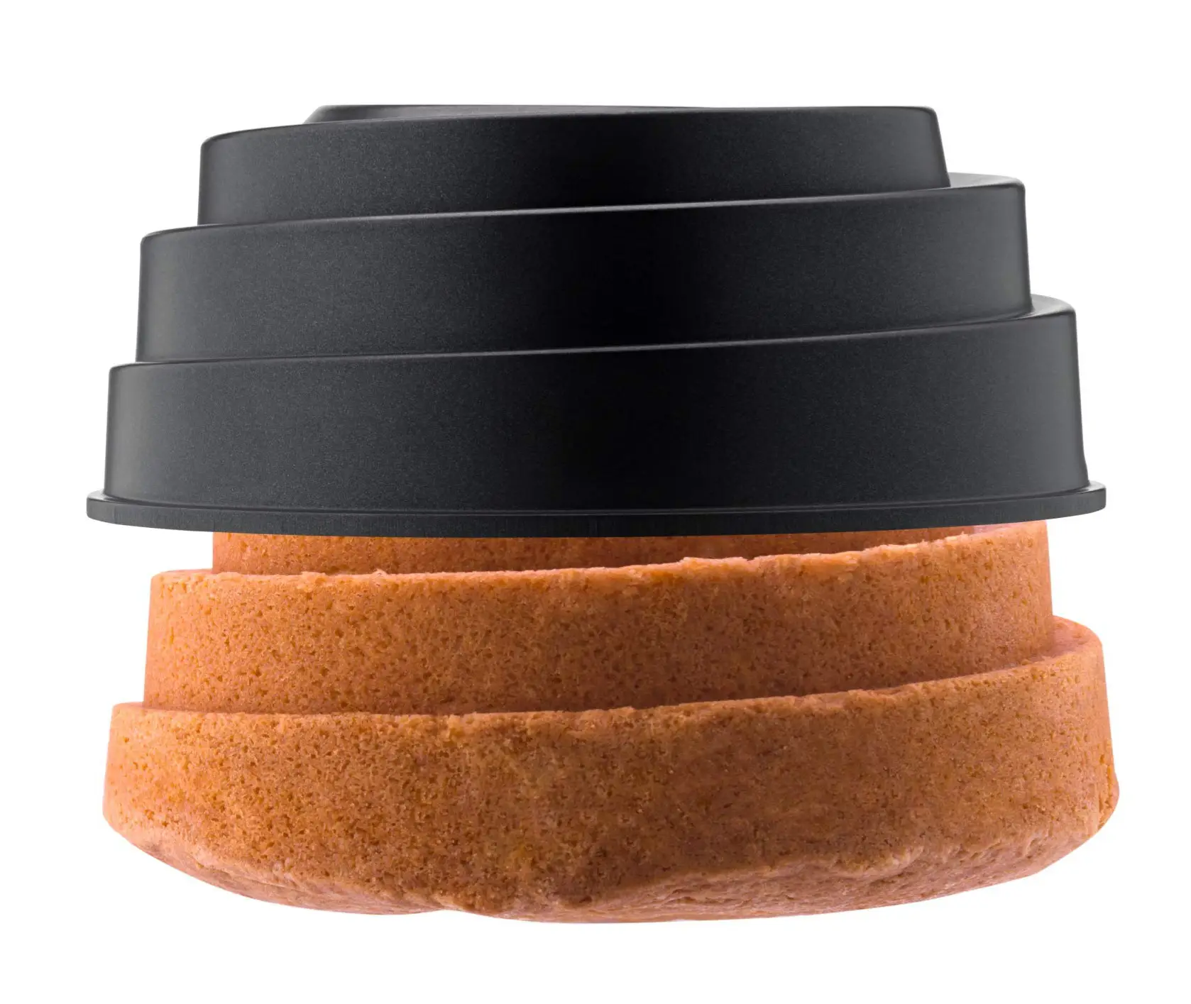 Prezentowana forma do babek o średnicy 25 cm wyprodukowana została w Niemczech ze stali, dzięki czemu dobrze przewodzi ona ciepło. Jej charakterystyczny komin zapewnia równomierne wypiekanie się ciasta. Dodatkowo forma po wewnętrznej stronie pokryta została powłoką non-stick dzięki której wypieki nie będą przywierać, co nie tylko ułatwi ich wyjecie oraz zachowanie ich estetycznego kształtu, ale i pomoże w czyszczeniu. Spiralny wzór sprawi, że pieczone w niej babki będą jedyne w swoim rodzaju. Forma przeznaczona jest do mycia ręcznego i nadaje się do używania w temperaturze do 230°C.