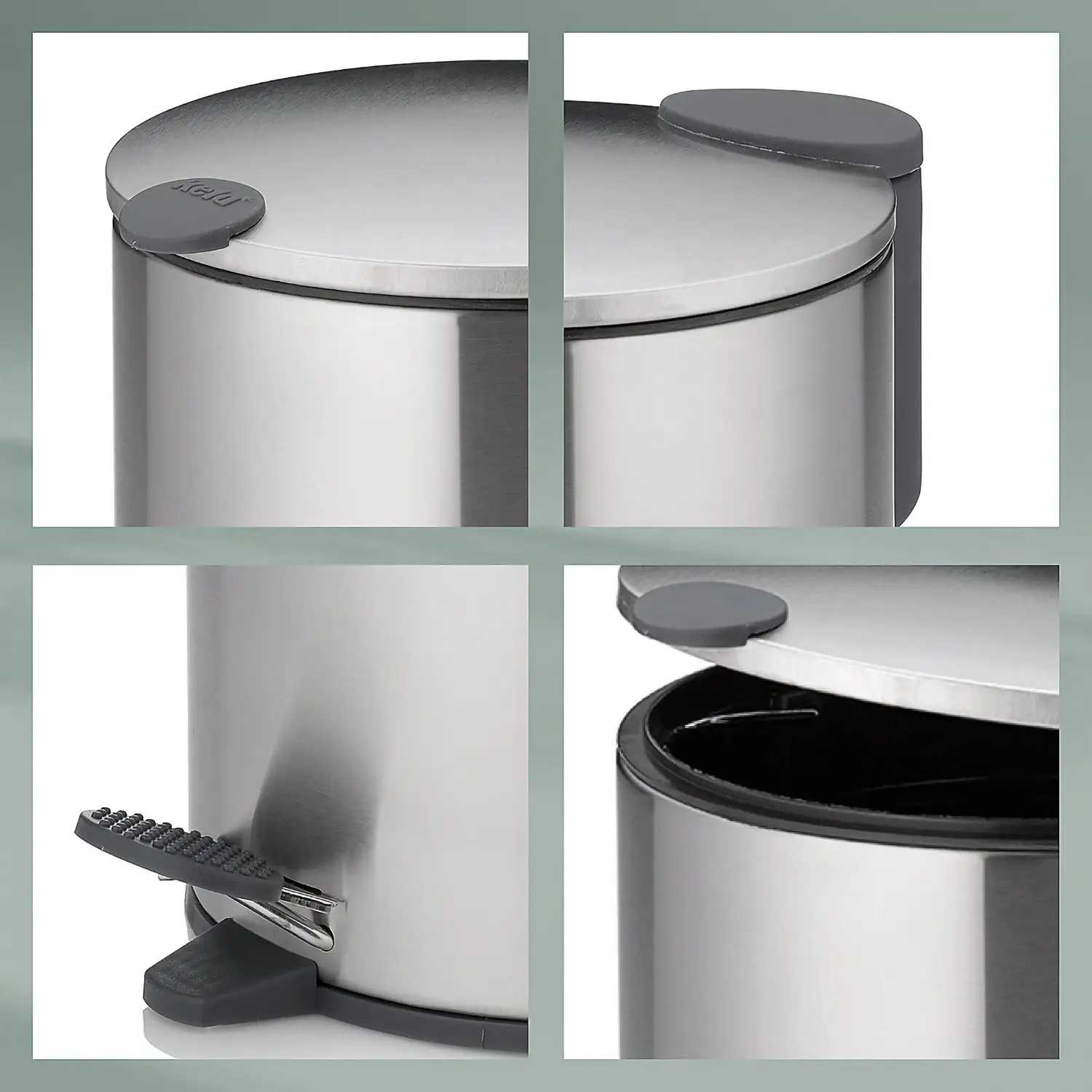 Prezentowany kosz o pojemności 12 L i wymiarach 25 x 38 cm (śr. x wys.) w kolorze srebrnym doskonale odnajdzie się w kuchni lub łazience, umożliwiając wygodne wyrzucanie odpadów. Zintegrowany system cichego zamykania sprawia, że jego pokrywa zamyka się cicho i powoli. Dodatkowy uchwyt w pokrywie umożliwia otwieranie ręczne, a praktyczny pedał pozwala na higieniczne i wygodne otwieranie bez pomocy rąk. Antypoślizgowa podstawa zapobiega ślizganiu się kosza po powierzchni podłogi, zapewniając odpowiednią stabilność podczas używania. By ułatwić opróżnianie wewnętrzne wiadro z osobnym uchwytem jest wyjmowane, a pokrywa zatrzaskuje się w pozycji pionowej.