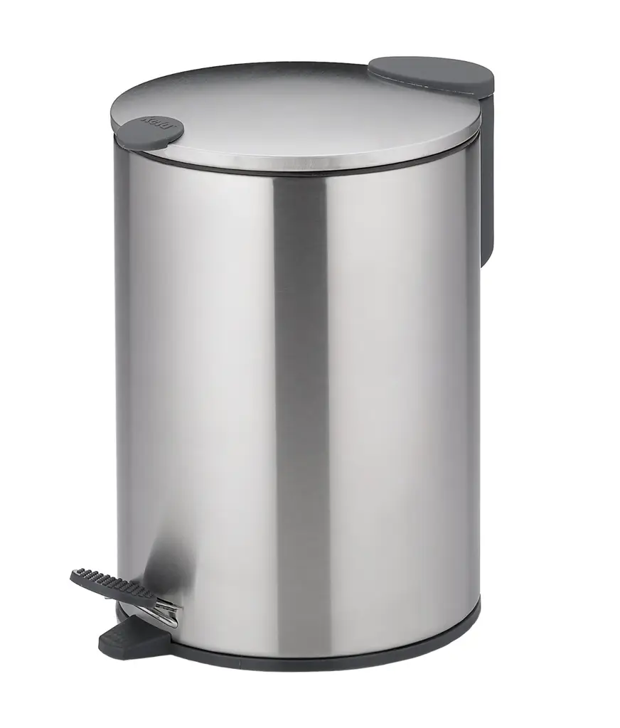 Prezentowany kosz o pojemności 3 L i wymiarach 17 x 24,5 cm (śr. x wys.) w kolorze srebrnym doskonale odnajdzie się w łazience, umożliwiając wygodne wyrzucanie odpadów. System zamykania sprawia, że pokrywa zamyka się przyjemnie cicho. Obsługa za pomocą pedału ułatwia używanie bez pomocy rąk, a antypoślizgowa podstawa zapobiega ślizganiu się po powierzchni podłogi. Ponadto kosz posiada dodatkowy uchwyt na pokrywie który w razie potrzeby ułatwia otwieranie jej ręką, a sama pokrywa zatrzaskuje się w pozycji pionowej, co ułatwia wyjmowanie wewnętrznego plastikowego wiadra z osobnym uchwytem gdy trzeba go opróżnić.