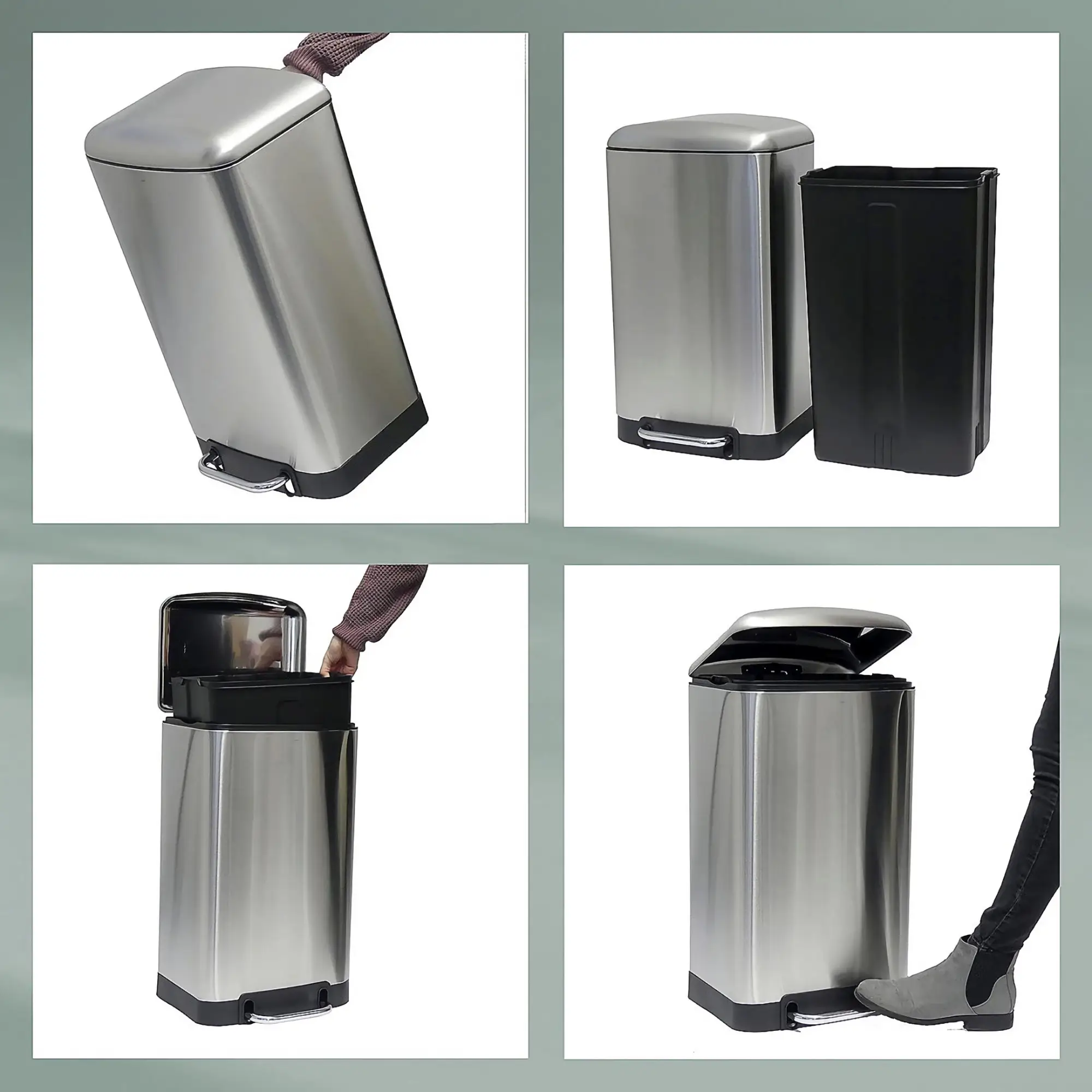 Prezentowany kosz o pojemności 30 L i wymiarach 34 x 30 x 61 cm (szer. x gł. x wys.) wykonano ze stali nierdzewnej. Ma on srebrny kolor z matowym wykończeniem. Praktyczny pedał umożliwia higieniczne i wygodne korzystanie bez pomocy rąk. Technologia Silent Close sprawia, że pokrywa nie opada gwałtownie po zamknięciu, ale zamyka się cicho i powoli. Dodatkowo po lekkim naciśnięciu do tyłu, gdy jest otwarta, można ją zablokować, aby wygodnie wyjąć wewnętrzny pojemnik w celu bezproblemowego opróżnienia. By z powrotem odblokować pokrywę należy ponownie ją nacisnąć.