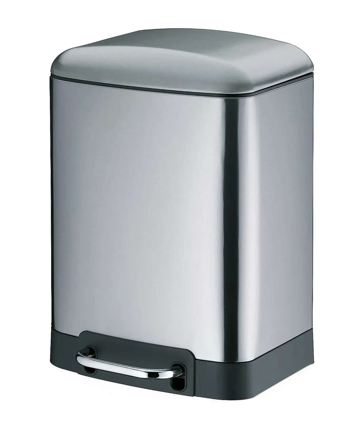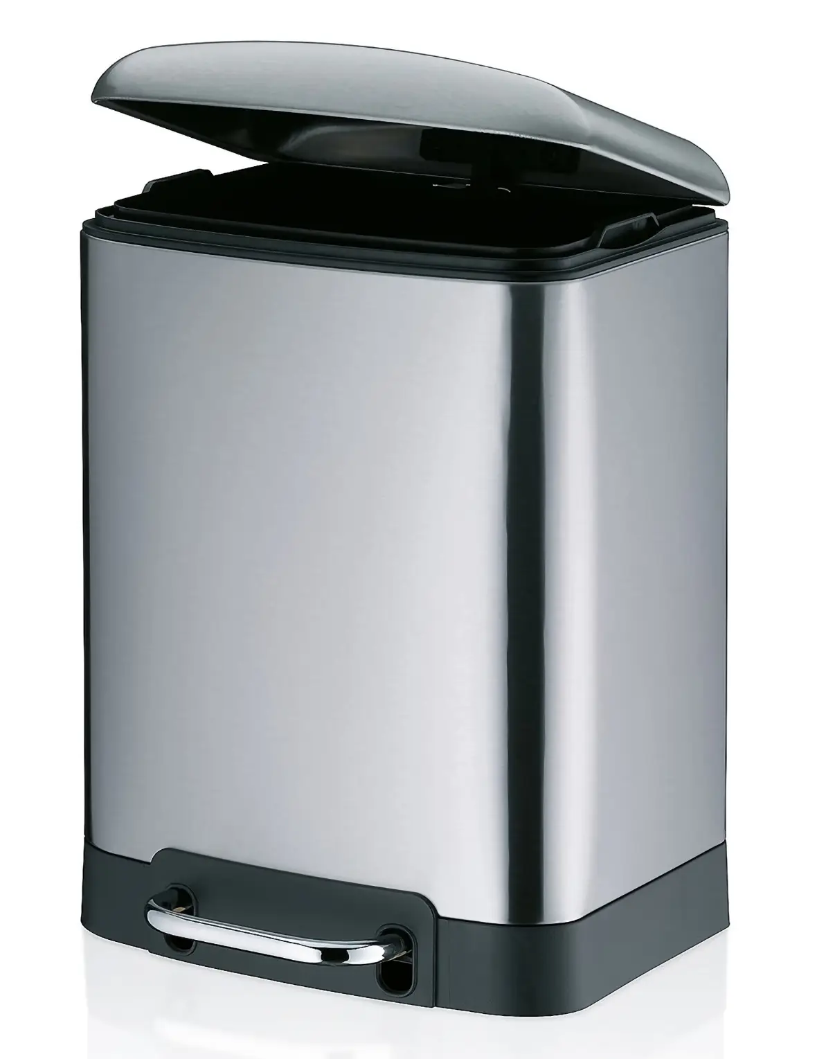 Prezentowany kosz o pojemności 6 L i wymiarach 22,5 x 20,5 x 32,5 cm (dł. x szer. x wys.) wykonano ze stali nierdzewnej. Ma on srebrny kolor z matowym wykończeniem. Praktyczny pedał umożliwia higieniczne i wygodne korzystanie bez pomocy rąk. Technologia Silent Close sprawia, że pokrywa nie opada gwałtownie po zamknięciu, ale zamyka się cicho i powoli. Dodatkowo po lekkim naciśnięciu do tyłu, gdy jest otwarta, można ją zablokować, aby wygodnie wyjąć wewnętrzny pojemnik w celu bezproblemowego opróżnienia. By z powrotem odblokować pokrywę należy ponownie ją nacisnąć.
