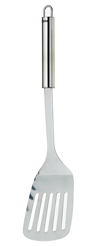 Prezentowana łopatka kuchenna o wymiarach 33,5 x 8 cm (dł. x szer.) wykonana została z polerowanej stali nierdzewnej, dzięki czemu jest odpowiednio higieniczna i odporna na korozję. Idealnie sprawdzi się do obracania i nakładania żywności. Łopatka posiada praktyczne otwory, które ułatwią pozbycie się nadmiaru sosu lub tłuszczu oraz wygodny uchwyt. Dodatkowo na końcu rączki ma ona pętelkę, która ułatwi przechowywanie, umożliwiając zawieszenie na haczyku kuchennym. Produkt przeznaczony jest wyłącznie do mycia ręcznego.