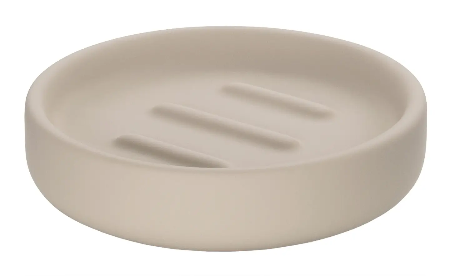 Prezentowana okrągła mydelniczka w beżowym kolorze o wymiarach 11,5 x 3 cm (śr. x wys.) wykonana została z ceramiki. Jej estetyczny, minimalistyczny design wpasuje się w wiele wnętrz. Umożliwia ona wygodne przechowywanie mydła w kostce, dzięki niewielkim rozmiarom nadając się nawet do mniejszych przestrzeni. Praktyczne wypustki na jej powierzchni ułatwiają obsychanie kostki, dzięki czemu mniej się jej marnuje. Mydelniczka przeznaczona jest do czyszczenia ręcznego.