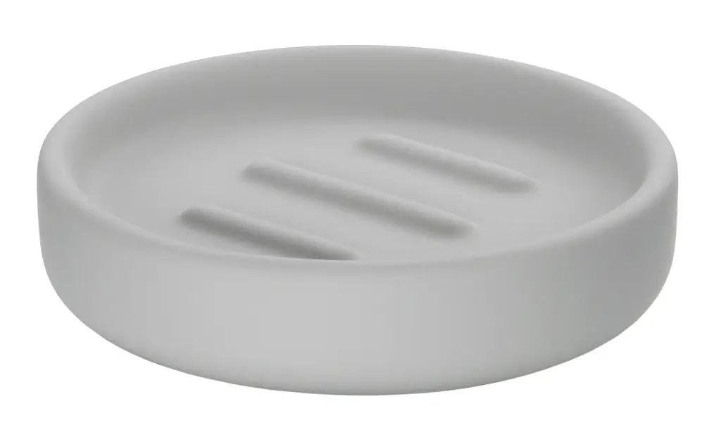 Prezentowana okrągła mydelniczka w szarym kolorze o wymiarach 11,5 x 3 cm (śr. x wys.) wykonana została z ceramiki. Jej estetyczny, minimalistyczny design wpasuje się w wiele wnętrz. Umożliwia ona wygodne przechowywanie mydła w kostce, dzięki niewielkim rozmiarom nadając się nawet do mniejszych przestrzeni. Praktyczne wypustki na jej powierzchni ułatwiają obsychanie kostki, dzięki czemu mniej się jej marnuje. Mydelniczka przeznaczona jest do czyszczenia ręcznego.