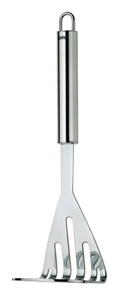 Prezentowany tłuczek do ziemniaków o wymiarach 25 x 8 cm (dł. x śr.) wykonany został z polerowanej stali nierdzewnej - higienicznego materiału odpornego na korozję. Idealnie sprawdzi się do rozgniatania ziemniaków na puree lub innych miękkich warzyw. Wygodny uchwyt zapewnia komfort używania, a pętelka na jego końcu ułatwia przechowywanie, umożliwiając zawieszenie na haczyku kuchennym. Tłuczek przeznaczony jest do mycia ręcznego.