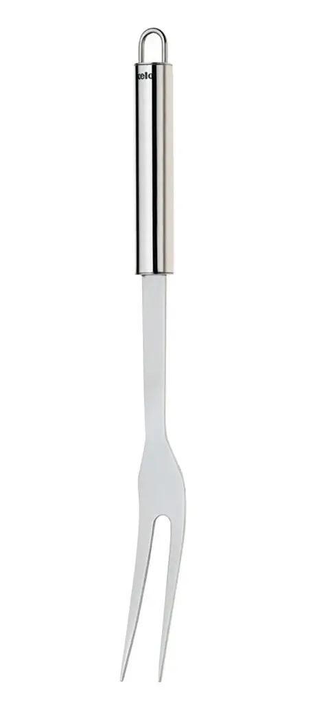 Prezentowany widelec do mięs o długości 32 cm (dł.) wykonany został z polerowanej stali nierdzewnej, dzięki czemu jest odporny na korozję oraz higieniczny. Doskonale nadaje się do nakładania wędlin, kawałków pieczeni i innych mięs. Widelec posiada uchwyt do wygodnego używania oraz pętelkę do zawieszania, która ułatwia przechowywanie, pozwalając na umieszczenie go na haczyku kuchennym. Produkt przeznaczony jest do mycia ręcznego.