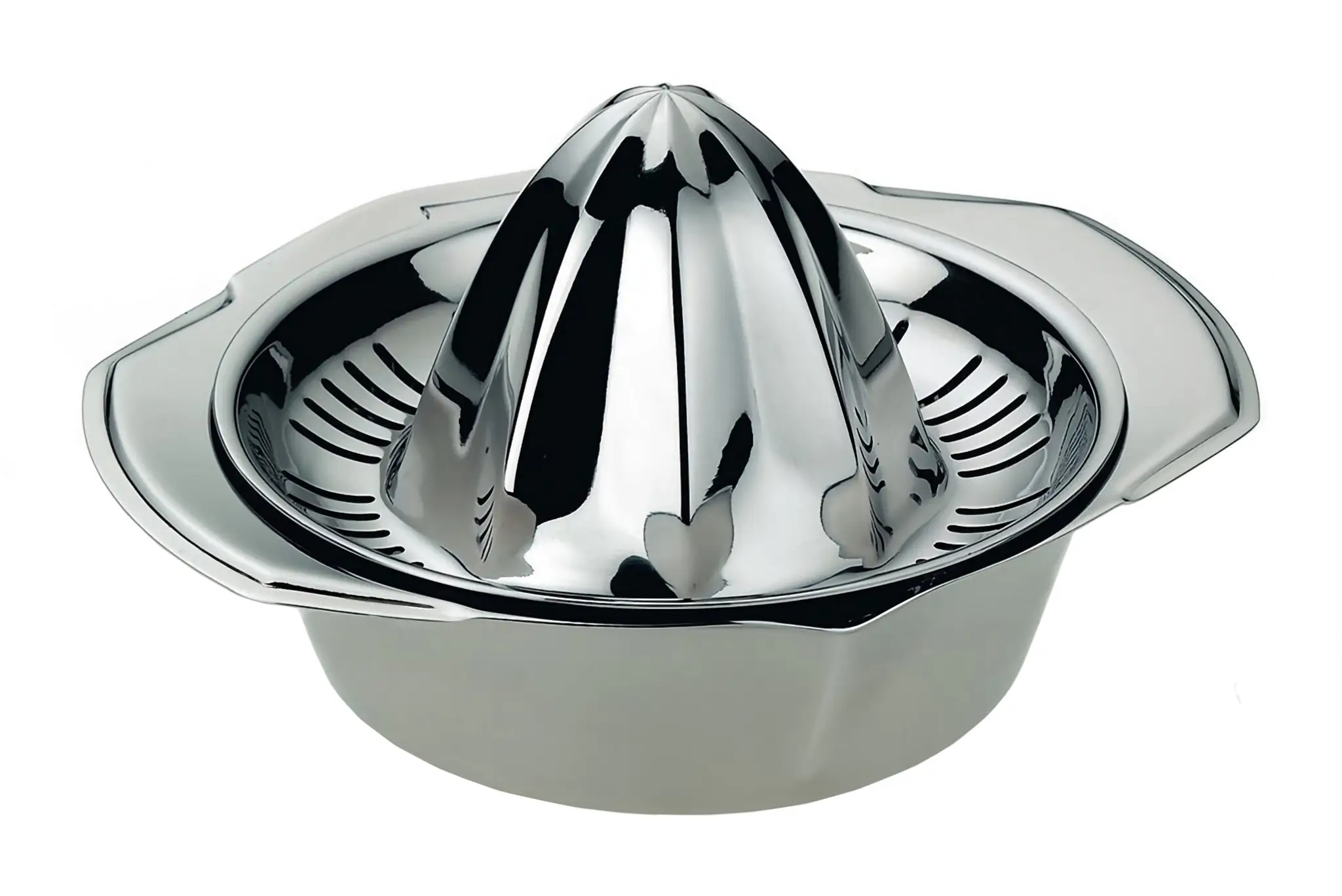 Prezentowana ręczna wyciskarka do soków z cytrusów z linii Vision ma wymiary 12,5 x 6,5 cm (szer. x wys.). Wykonano ją z polerowanej stali nierdzewnej 18/10 w srebrnym kolorze. Idealnie sprawdzi się ona podczas przygotowywania deserów, lemoniad, sosów itp., pozwalając na łatwe wyciśnięcie soku z cytryn, limonek, pomarańczy i innych cytrusów. Wyciskarka posiada klasyczny kształt ze stożkiem do wyciskania oraz pojemnik z dzióbkiem i bocznymi uchwytami. Produkt przeznaczony jest wyłącznie do mycia ręcznego.