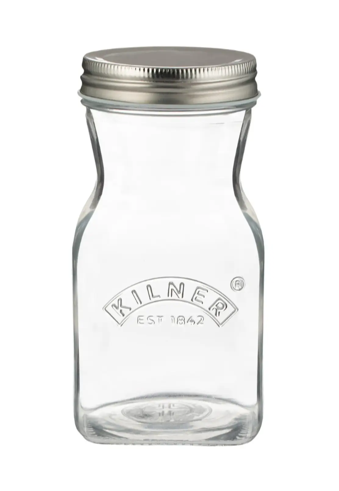 Prezentowana butelka o pojemności 0,5 L i wymiarach 8 x 15 cm (śr. x wys.) doskonale nada się na soki, sosy, jogurty i inne płynne produkty, dzięki szerokiemu wlewowi pozwalając na ich łatwe i wygodne wlewanie i wylewanie. Wykonana została ze szkła sodowego, a jej design tak opracowany by estetycznie i unikalnie się prezentowała. Dodatkowo wymiary butelki umożliwiają umieszczenie jej na drzwiach lodówki. Dołączona w komplecie praktyczna, okrągła, metalowa pokrywka pozwoli na krótkoterminowe przechowywanie w niej płynów. Produkt przeznaczony jest do mycia ręcznego i nie należy wlewać do niego wrzątku.