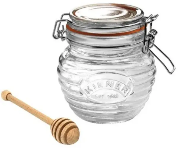 Nawet jeśli nie jesteś fanem Kubusia Puchatka, ale wciąż miód jest jednym z częstych produktów na Twoim stole, to dobrym rozwiązaniem jest podawanie go w specjalnym pojemniku i nakładanie przy pomocy specjalnej łyżki. Słoik na miód z czerpakiem firmy Kilner to propozycja do przechowywania tego słodkiego produktu. Dodatkowo w zestawie oprócz słoika jest również czerpak z drewna bukowego. Pojemnik wykonany został z wysokiej jakości szkła o żłobionych ściankach, z tłoczonym logo marki. Słoik posiada charakterystyczną pokrywkę ze stalowymi klipsami i gumową uszczelkę, gwarantującą utrzymanie świeżości. Zalecane mycie ręczne. Nie należy wlewać wrzątku.