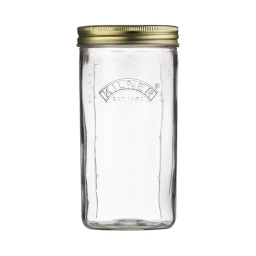 Szeroki wlew znacznie ułatwi napełnianie i opróżnianie słoika. Poza logiem na słoiku znajduje się mililtrowa podziałka. Dzięki zakręcanej pokrywie mamy pewność, że zawartość się nie wyleje. Posiada metalową pokrywkę. Nadaje się idealnie do przechowywania oraz fermentowania żywności.