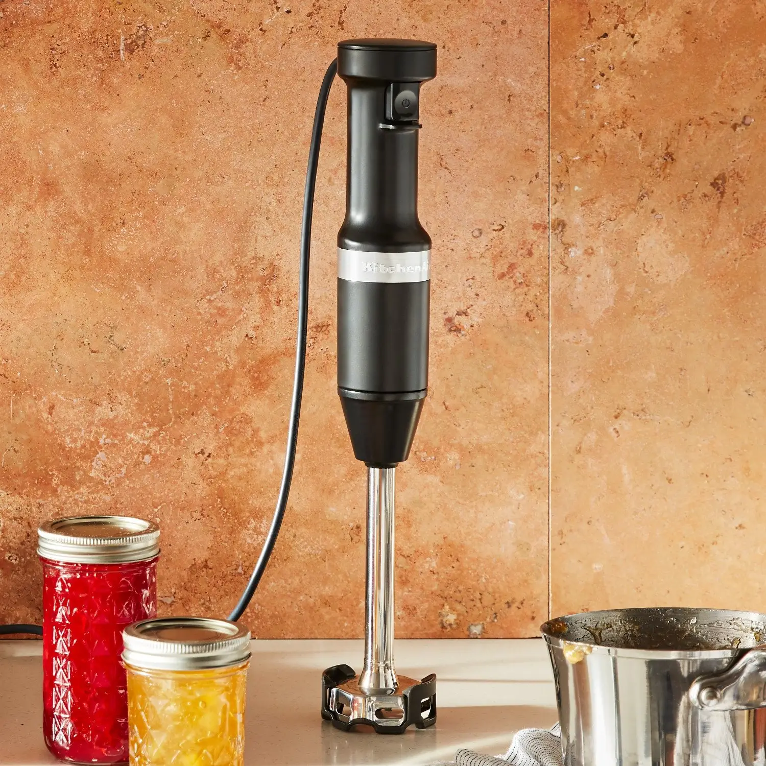 Niewielki, przewodowy blender ręczny od KitchenAid w kolorze czarnym, matowym, to produkt nowoczesny i uniwersalny. Jego długi na 150 cm przewód zasilający umożliwi swobodne manewrowanie urządzeniem, a lekka konstrukcja, wykonane ze stali nierdzewnej ostrze w kształcie litery S oraz wygodny uchwyt pozwolą na łatwe, komfortowe rozdrabnianie owoców oraz przygotowywanie m.in. koktajli, smoothie, przecierów, sosów czy zup o płynnej konsystencji. Silnik blendera jest niezawodny, wydajny i silny, a prędkość regulowana jest przy pomocy nacisku na przycisk (im mocniejszy nacisk tym szybsze obroty ostrza), co umożliwia pełną kontrolę nad procesem blendowania. Ramię blendera jest zdejmowane, co ułatwi jego czyszczenie oraz przechowywanie.
