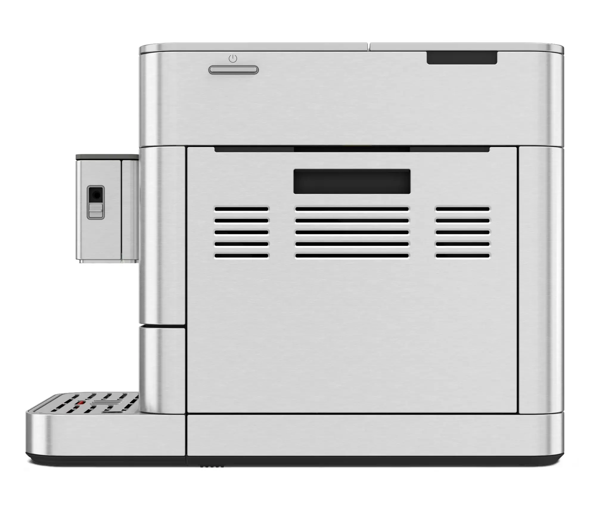 Prezentowany ekspres w srebrnym kolorze ma metalową obudowę, co przekłada się na odpowiednią solidność i trwałość. Wyposażono go w nowoczesny system grzewczy w postaci pojedynczej termocewki (thermocoil) co zapewnia szybsze nagrzewanie i stabilniejszą temperaturę przez cały czas parzenia niż w przypadku tradycyjnego termobloku. 15 gotowych programów, szeroki zakres ustawień i rozbudowane funkcje personalizacji zapewniają wygodę używania - można regulować wiele parametrów takich jak: moc kawy, temperatura zaparzania, cielistość (body), proporcja mleka do pianki, ilość wody, kolejność dodawania kawy i mleka podczas zaparzania. Ekspres posiada możliwość zapisania ustawień w ramach 4 dostępnych profili użytkowników dla większej personalizacji. Wyjmowany pojemnik na ziarna kawy ze szczelną pokrywą nie tylko zapewnia świeżość ziaren, ale i umożliwia wygodne zmienianie rodzaju parzonej kawy oraz ułatwia czyszczenie ekspresu. Mycie elementów urządzenia ułatwia także łatwy w demontażu blok zaparzający - wystarczy odchylić element obudowy, przekręcić dźwignię i wyciągnąć blok zaparzający w celu umycia, a ekspres odwdzięczy się długą i bezawaryjną pracą. Dodatkowo ekspres posiada kółka ukryte w podstawie dla swobodnego przemieszczania po blacie.