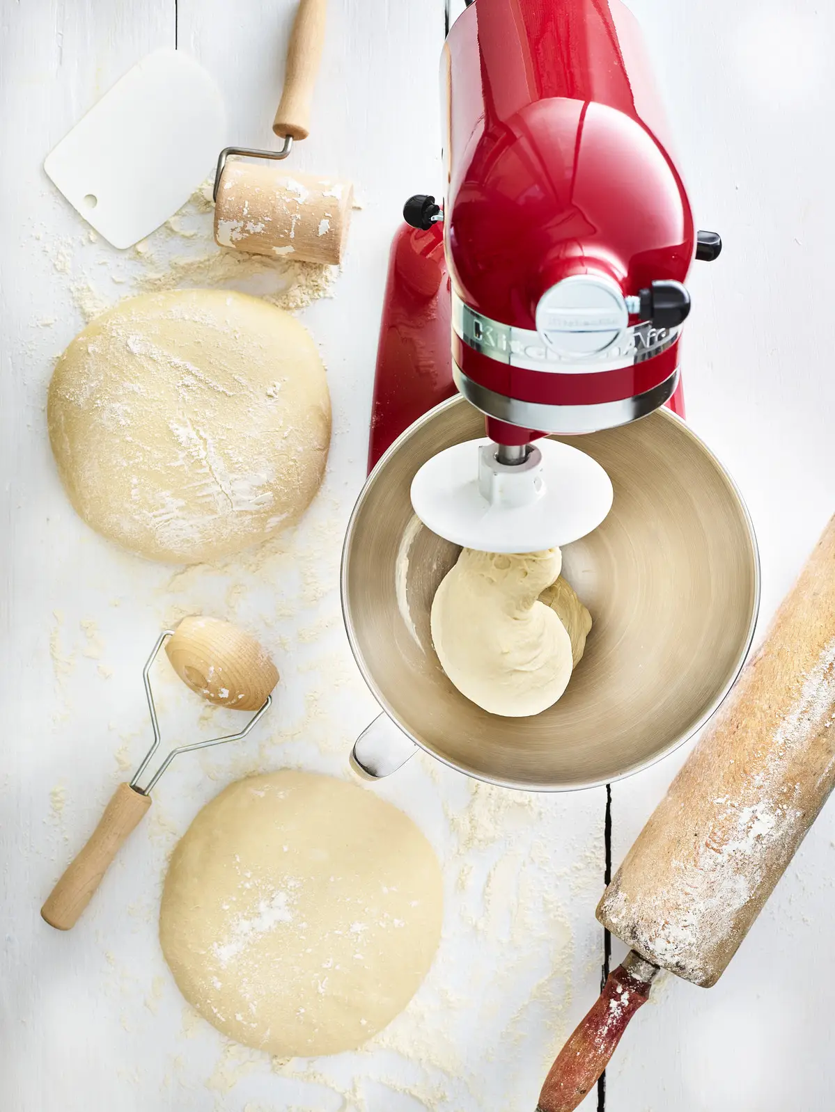 Dzięki temu narzędziu mikser KitchenAid poradzi sobie z wszystkimi rodzajami ciast drożdżowych - od chałek, poprzez pizzę do chleba żytniego doskonale je napowietrzając bez większego wysiłku. Można go użyć również do wyrabiania ciasta na pierogi oraz wyjątkowo twardego ciasta makaronowego. Można się nim także posłużyć gdy do wyrabianej masy trzeba pod koniec wmieszać delikatnie bakalie lub owoce kandyzowane, unikając przy tym ich niepożądanego uszkodzenia i nierównomiernego rozprowadzenia. Został wykonany z aluminium oraz pokryty nieprzywierającą powłoką nylonową