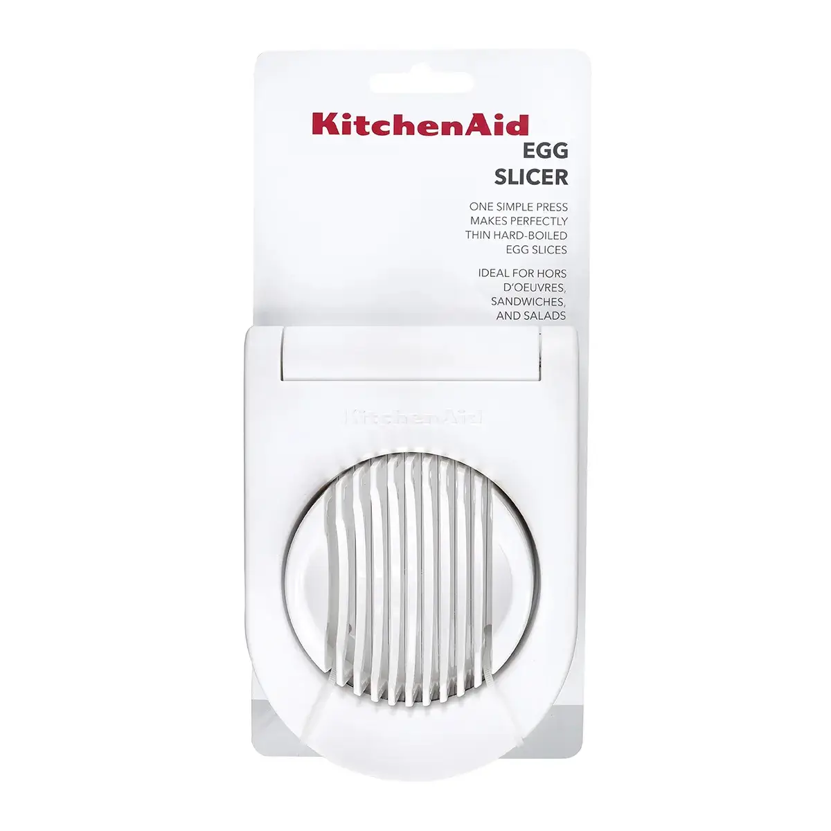Krajalnica do jajek na twardo KitchenAid to praktyczne narzędzie kuchenne, które pomaga uzyskać równomierne i efektowne plasterki z jajek na twardo. Dzięki tej krajalnicy Twoje jajka będą prezentować się estetycznie na talerzu, a przygotowywanie sałatek, kanapek czy dekoracji potraw stanie się łatwiejsze niż kiedykolwiek.
