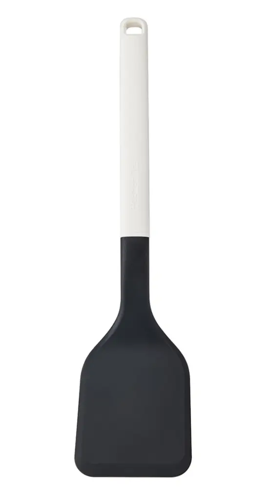 Prezentowana łopatka kuchenna o kolorze Porcelain White (białym) i wymiarach 34,5 x 8,5 x 1,5 cm (dł. x szer. x wys.) wykonana została z nylonu i tworzywa odpornego na wysoką temperaturę (do 232°C). Świetnie sprawdzi się do obracania i podnoszenia żywności ułatwiając przygotowywanie i nakładanie posiłków. Łopatka posiada szeroką końcówkę i ergonomiczny, wyprofilowany uchwyt z wytłoczonym logo marki oraz praktycznym otworem do zawieszenia na haczyku kuchennym. Produkt nie rysuje powierzchni naczyń - nadaje się do powłok non-stick. Dodatkowo jest łatwy w czyszczeniu - można go myć w zmywarce.
