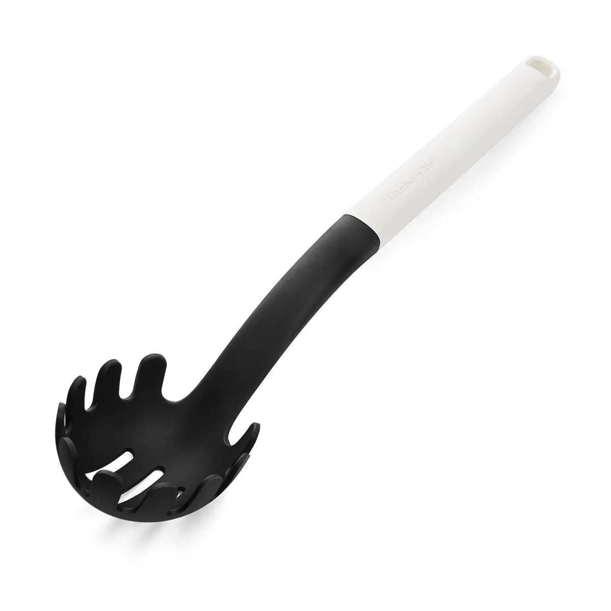 Prezentowana łyżka do spaghetti o wymiarach 34 x 7 cm (dł. x szer.) i kolorze Porcelain White (białym) wykonana została z nylonu i tworzywa odpornego na wysoką temperaturę (do 232°C). Świetnie sprawdzi się ona do gotowania i serwowania różnych rodzajów makaronu. Łyżka posiada praktyczne otwory do odprowadzania nadmiaru wody oraz ergonomiczny, wyprofilowany uchwyt z otworem do przechowywania na haczyku kuchennym. Produkt nie rysuje powierzchni naczyń - nadaje się do powłok non-stick. Dodatkowo łyżka jest łatwa w czyszczeniu - można ją myć w zmywarce.