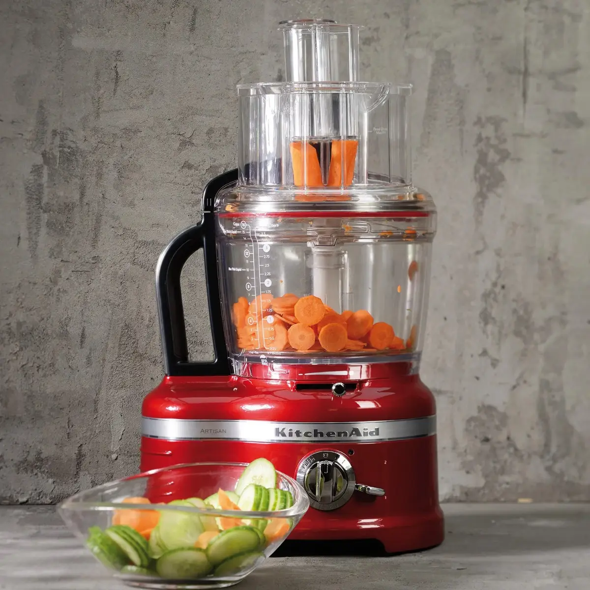 Malaksery Artisan 5KFP1644 dzięki rozbudowanemu wyposażeniu doskonale nadadzą się do przygotowywania składników do sałatek, zup, rozdrabniania lodu do koktajli, wyciskania cytrusów czy przygotowania kruchych i naleśnikowych ciast. Zastosowany w nich precyzyjnego krojenia "ExactSlice" złożony z suwaka płynnego nastawu grubości krojonych plastrów oraz szerokiego podajnika z potrójnym popychaczem wzdłuż i w poprzek pozwala na krojenie zarówno miękkich jak i twardych produktów o różnej średnicy i wielkości. Na precyzję krojenia wpłyną także dwie prędkości, funkcja PULSE oraz funkcja rozdrabniania owoców i warzyw w 3D. Jednocześnie ich elegancki wygląd wspaniale zaprezentuje się w kuchni, pasując zarówno do tradycyjnych jak i nowoczesnych wnętrz.
