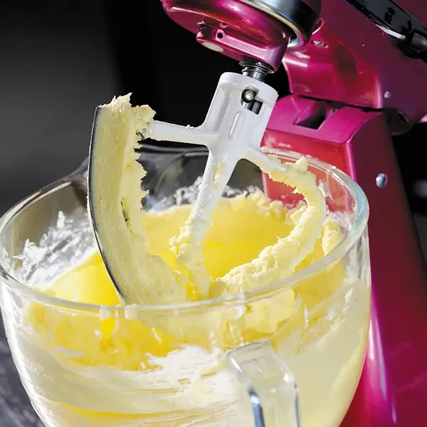 Mieszadło ze zgarniaczem z powlekanego metalu z silikonowym zgarniaczem (idealne do mas o zwykłej i ciężkiej konsystencji), pasujące do miksera Artisan 4,8 l. Mieszadło, dzięki specjalnemu zagarniaczowi, sięga do wewnętrznych ścianek dzieży, zgarniając przylepiające się do nich składniki. Dzięki temu używanie szpatułki do wygarniania pozostałości ciasta na ściankach naczynia staje się zbędne.