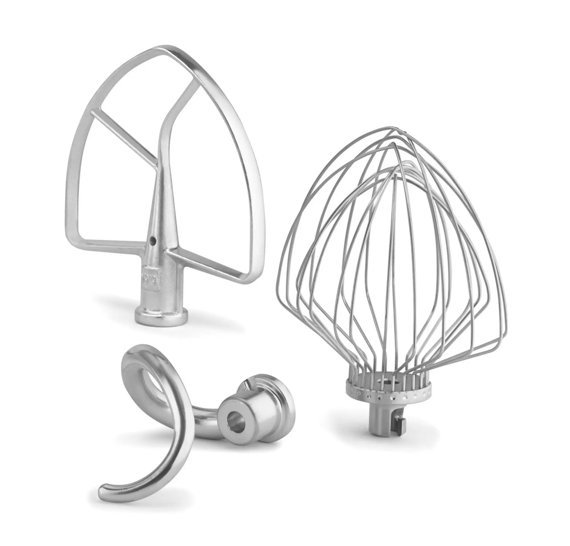 Prezentowany mikser w kolorze czerwonym wyposażony został we właściwą rozwiązaniom profesjonalnym podnoszoną dzieżę o pojemności 6,9 L, której duża średnica wspomaga proces napowietrzania. Posiada ona uchwyt w kształcie litery “J” który ułatwi przechowywanie jej na relingu lub w innej dzieży. Dołączony do urządzenia stalowy podajnik ułatwi dolewanie płynnych składników w trakcie pracy z nim. Mikser wyposażony został także w trzy wymienne narzędzia: 22-prętową rózgę o eliptycznym kształcie do ubijania i napowietrzania lekkich mas, hak do wyrabiana ciast drożdżowych i makaronowych oraz mieszadło do mieszania mas o gęstej konsystencji. Wszystkie z jego akcesoriów wykonane zostały ze stali nierdzewnej, co zapewnia ich solidność oraz wytrzymałość. Można je również myć w zmywarce. Ponadto mikser posiada wyłącznik przeciążeniowy oraz uniemożliwiającą przypadkowe jego włączenie osłonę dzieży, dzięki czemu spełnia wymagania inspekcji pracy.