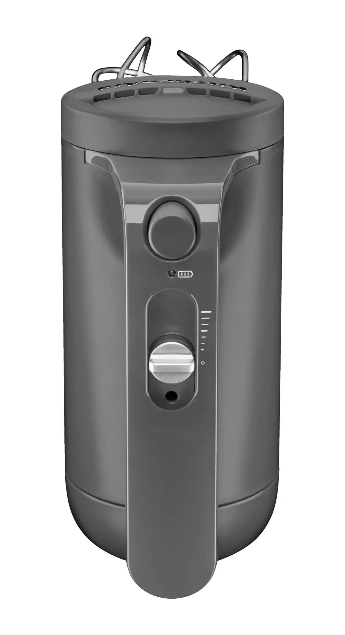 Mikser posiada akumulator litowo-jonowy, który jest bardzo wydajny i zapewnia optymalny czas działania - w pełni naładowany pozwoli na zrobienie ciasta na 200 ciasteczek. O konieczności jego naładowania poinformuje wskaźnik baterii. Samo ładowanie zajmie jedynie do 2 godzin - do miksera dołączona została ładowarka, która pasuje również do innych urządzeń z kolekcji Cordless. Urządzenie posiada 2 trzepaczki ze stali nierdzewnej o wzmocnionej u nasady konstrukcji są szybkie w demontażu - za pomocą dużego przycisku, oraz nadają się do mycia w zmywarce, co ułatwi ich czyszczenie. Mikser został zaprojektowany tak, by można go było postawić na blacie, co dodatkowo wpłynie na wygodę korzystania z niego. Posiada 7 regulowanych przy pomocy suwaka prędkości, które pozwolą na powolne mieszanie składników, szybsze połączenie np. cukru z masłem, a także na szybkie ubijanie jajek, kremów czy śmietany. Jego zaletą jest także funkcja Soft Start, która wyeliminuje gwałtowne rozpryskiwanie składników powoli zwiększając prędkość po uruchomieniu urządzenia.