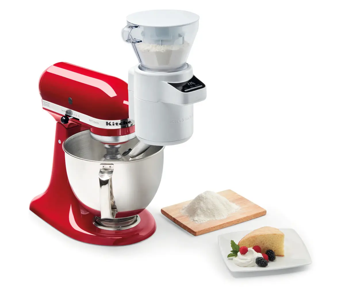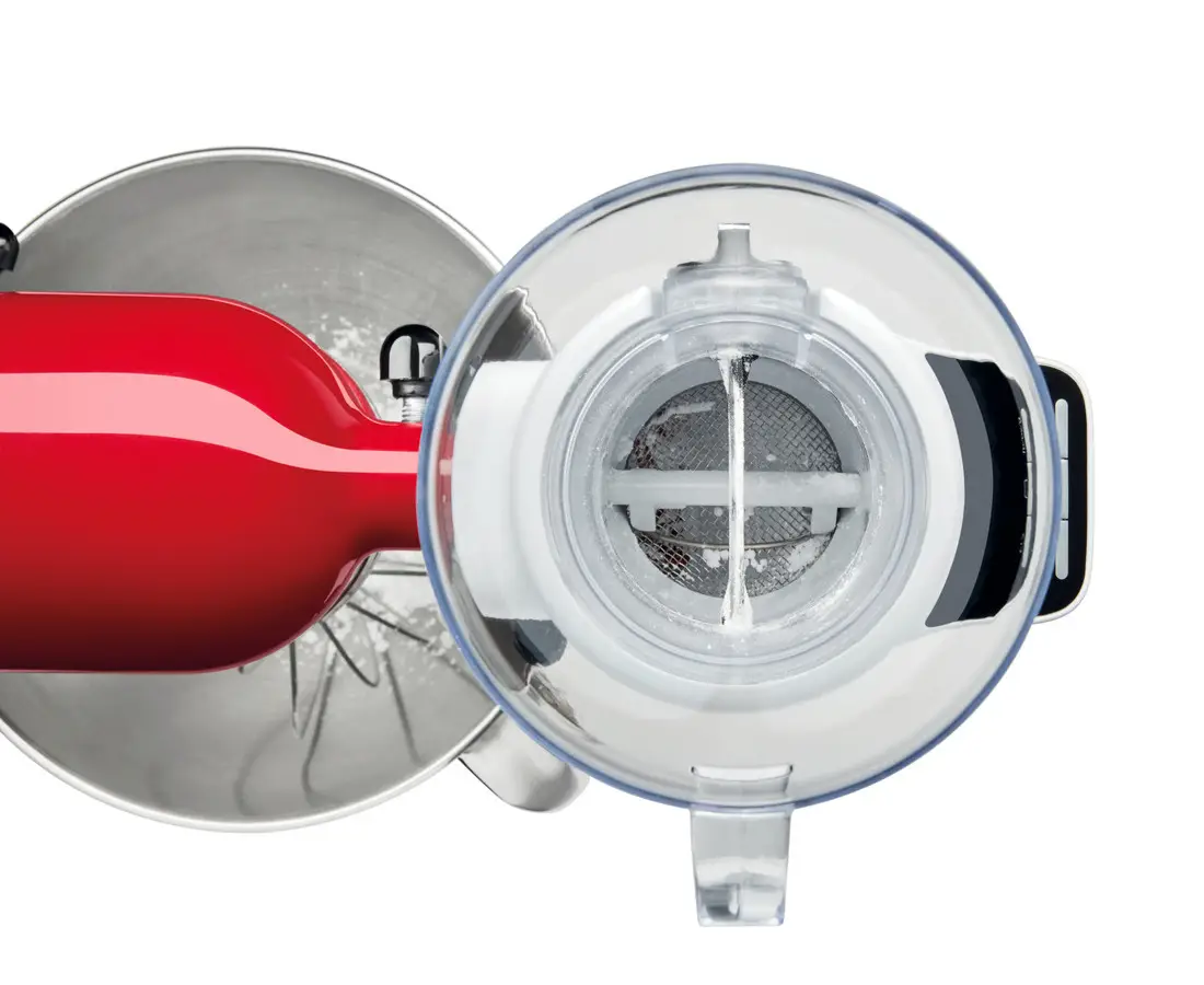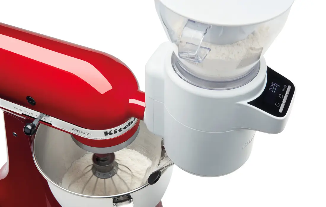 Przystawka zapewnia precyzyjne odważanie i jednoczesne przesiewanie sypkich składników jak mąka czy kakao co jest niezbędne dla osiągnięcia doskonale puszystych wypieków. Składa się z wagi cyfrowej i dopasowanego do niej modułu przesiewania, który kieruje przesiane składniki wprost do dzieży miksera lub innego podstawionego naczynia. Prędkość przesiewania jest kontrolowana przez użytkownika. Cała operacja nie pozostawi pyłu na blacie kuchennym. Wagę można odłączyć i używać oddzielnie.
